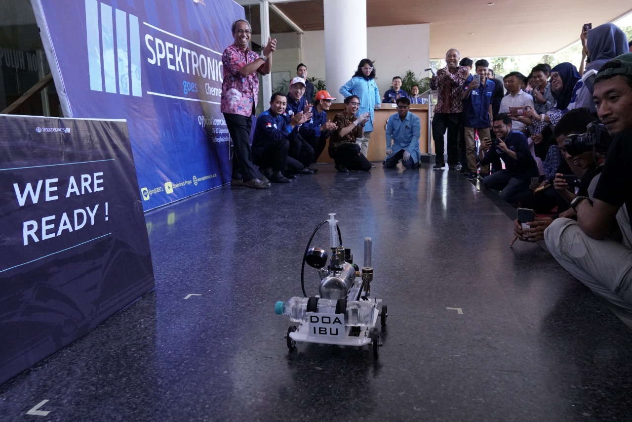 Kampus ITS, ITS News – Mobil prototype berbahan bakar reaksi kimia besutan Tim Spektronics Institut Teknologi Sepuluh Nopember (ITS), siap berlaga dalam kompetisi internasional Chemeca Chem-e-Car Competition 2019 di Sydney, Australia pada 26 – 30 September 2019 mendatang. Rancangan mobil prototype terbaru ini resmi diluncurkan oleh Rektor ITS Prof Dr Ir Mochamad Ashari MEng di halaman Gedung Rektorat ITS, Senin (23/9).