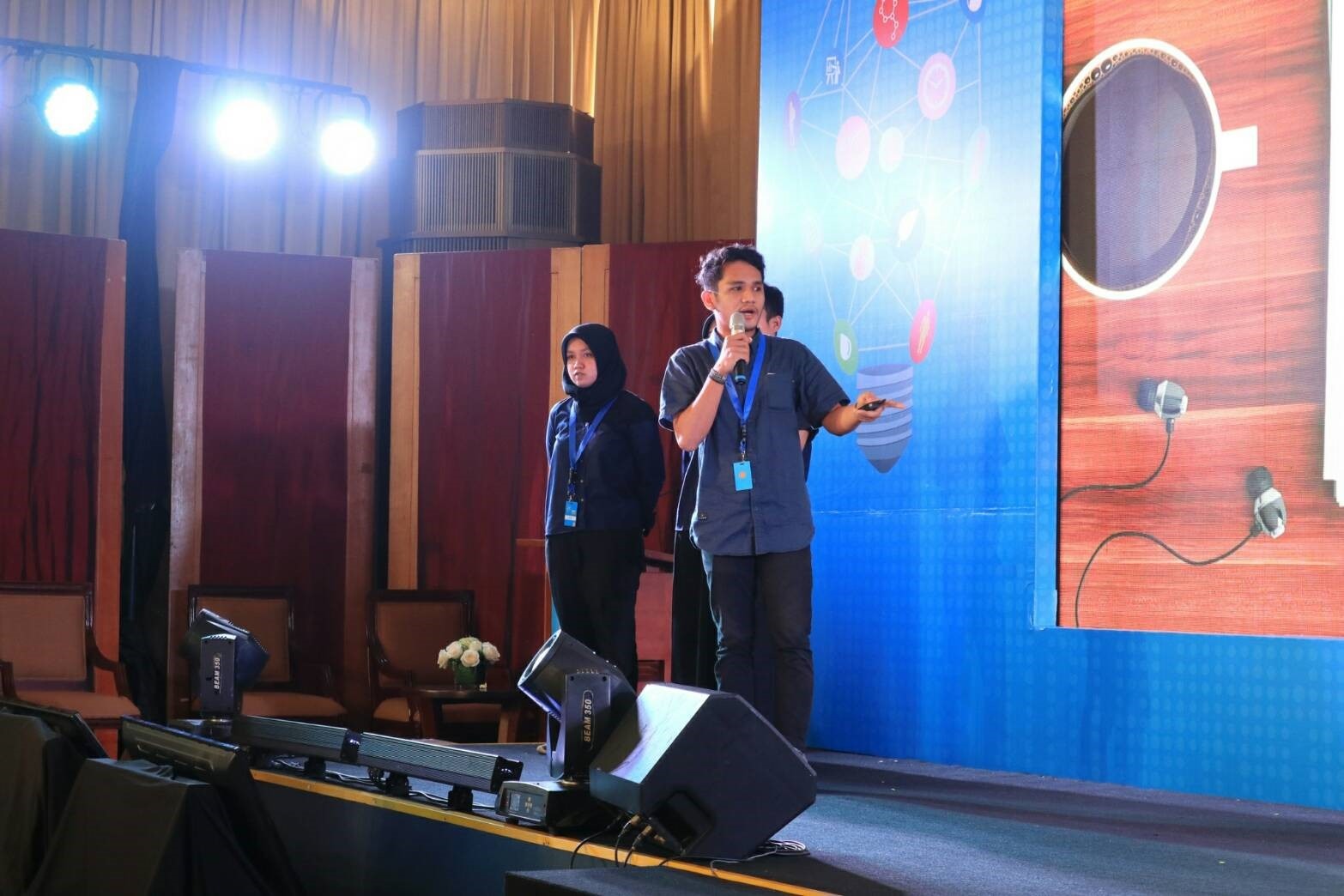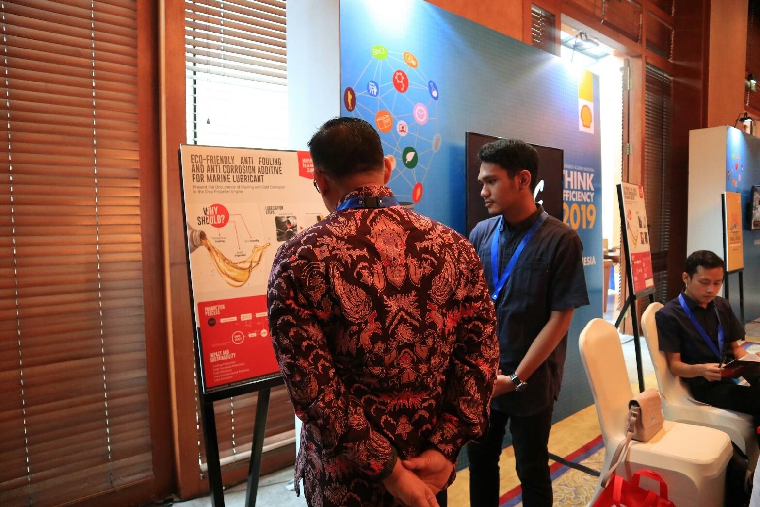 Pengenalan booth terkait inovasi aditif pelumasan pada mesin kapal kepada tamu undangan Shell Indonesia