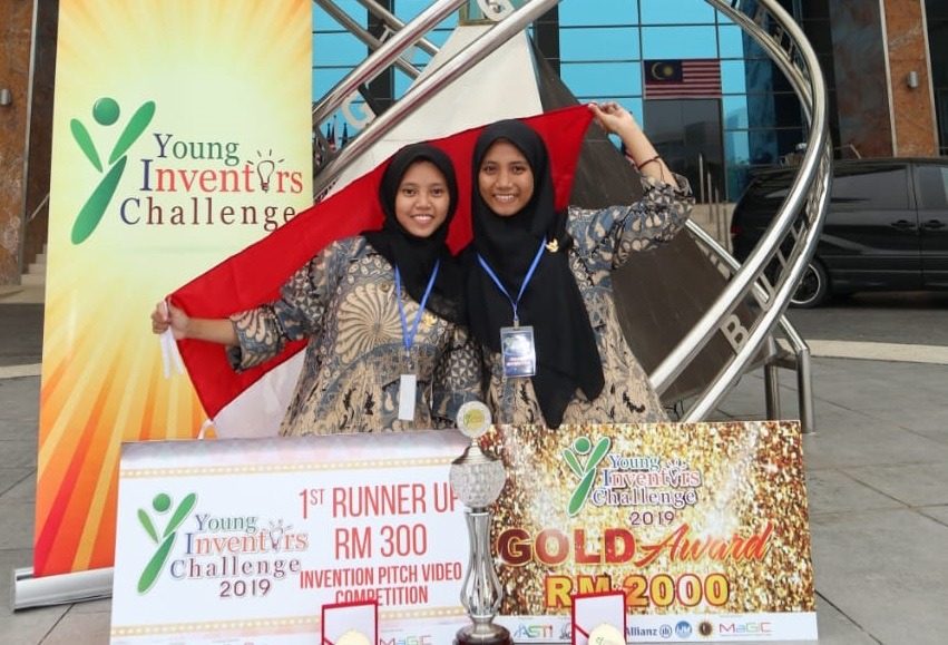 (dari kanan) Suprihatin dan Siti Nur Khalizah berhasil meraih penghargaan medali emas pada Young Inventors Challenge di Malaysia