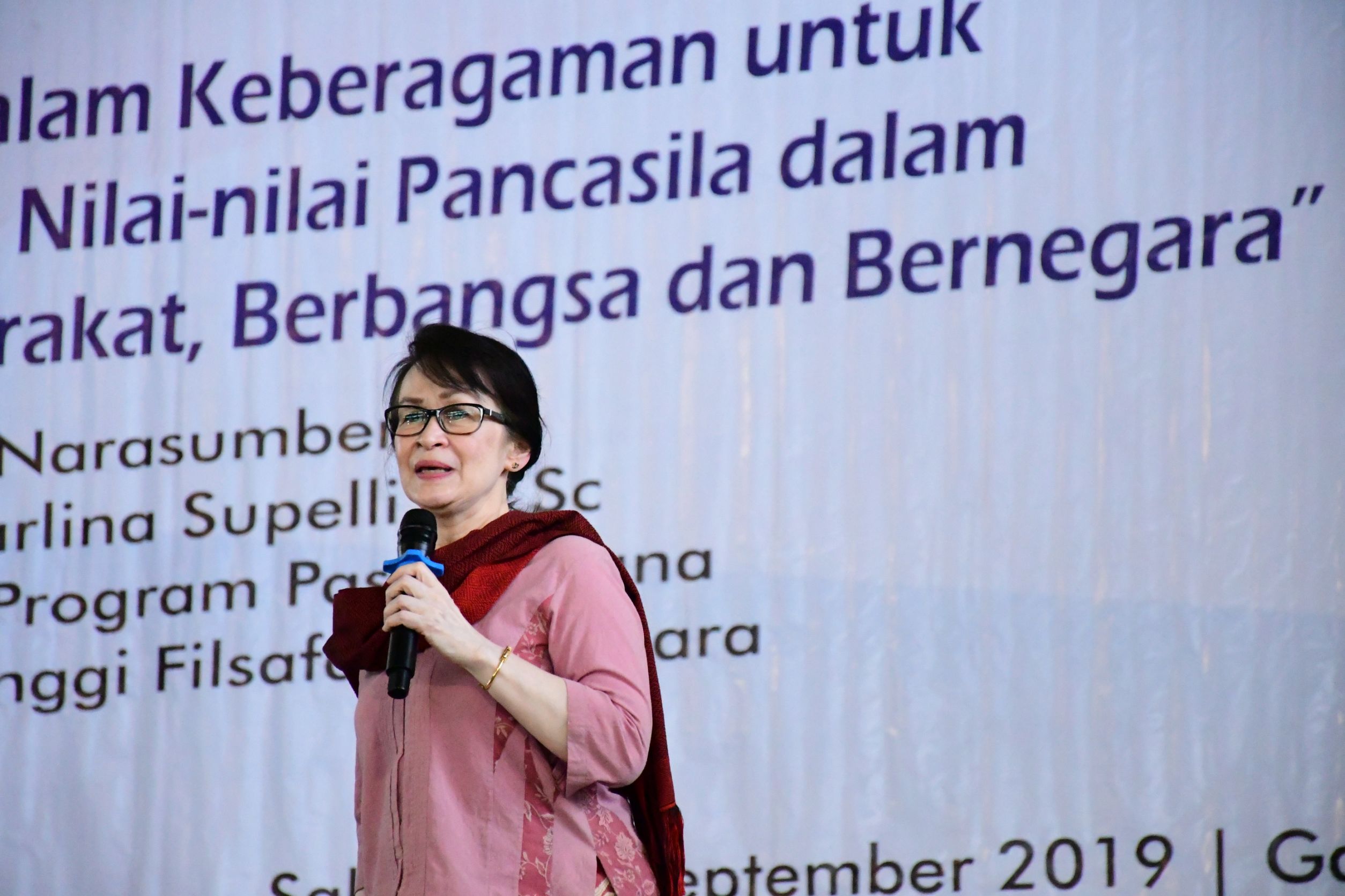 Dr Karlina Supelli MSc sedang menyampaikan paparan terkait nilai- nilai pancasila