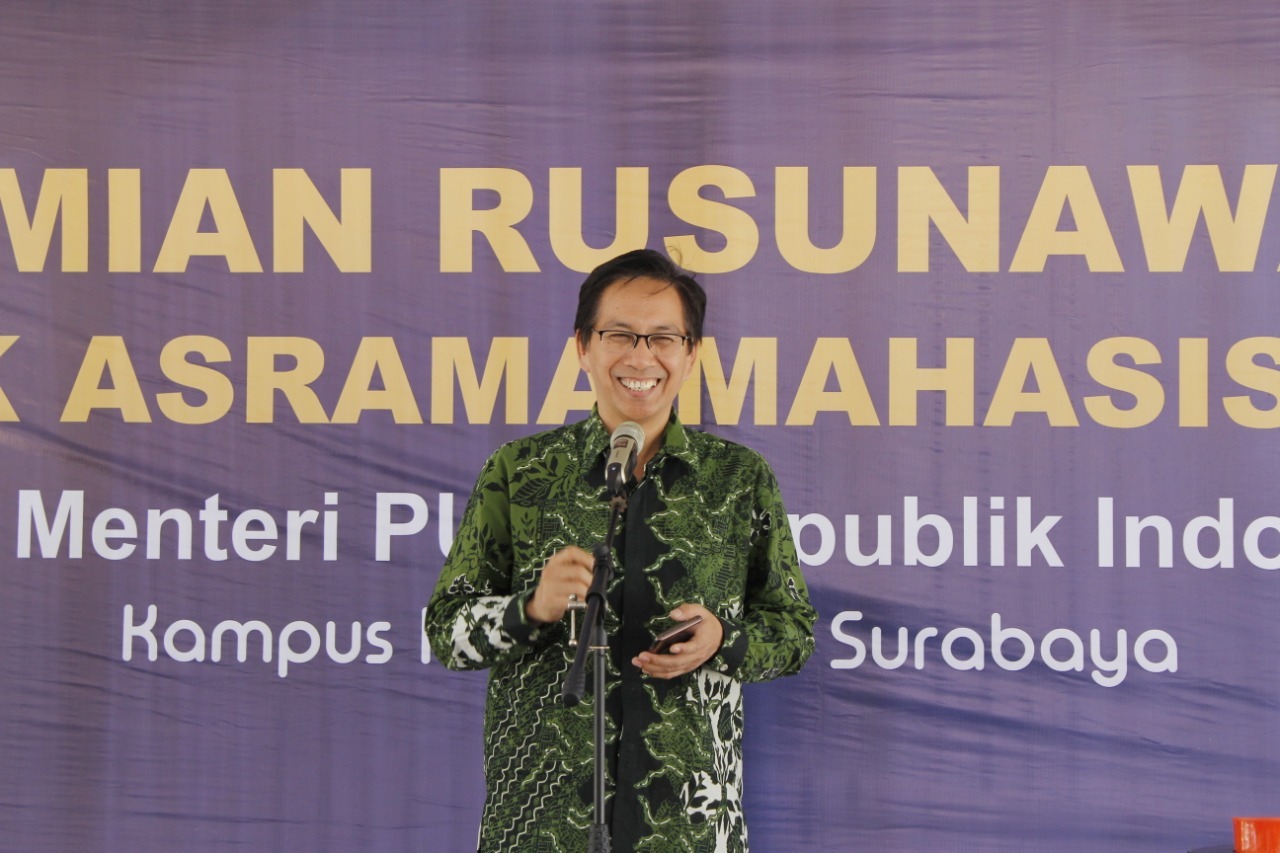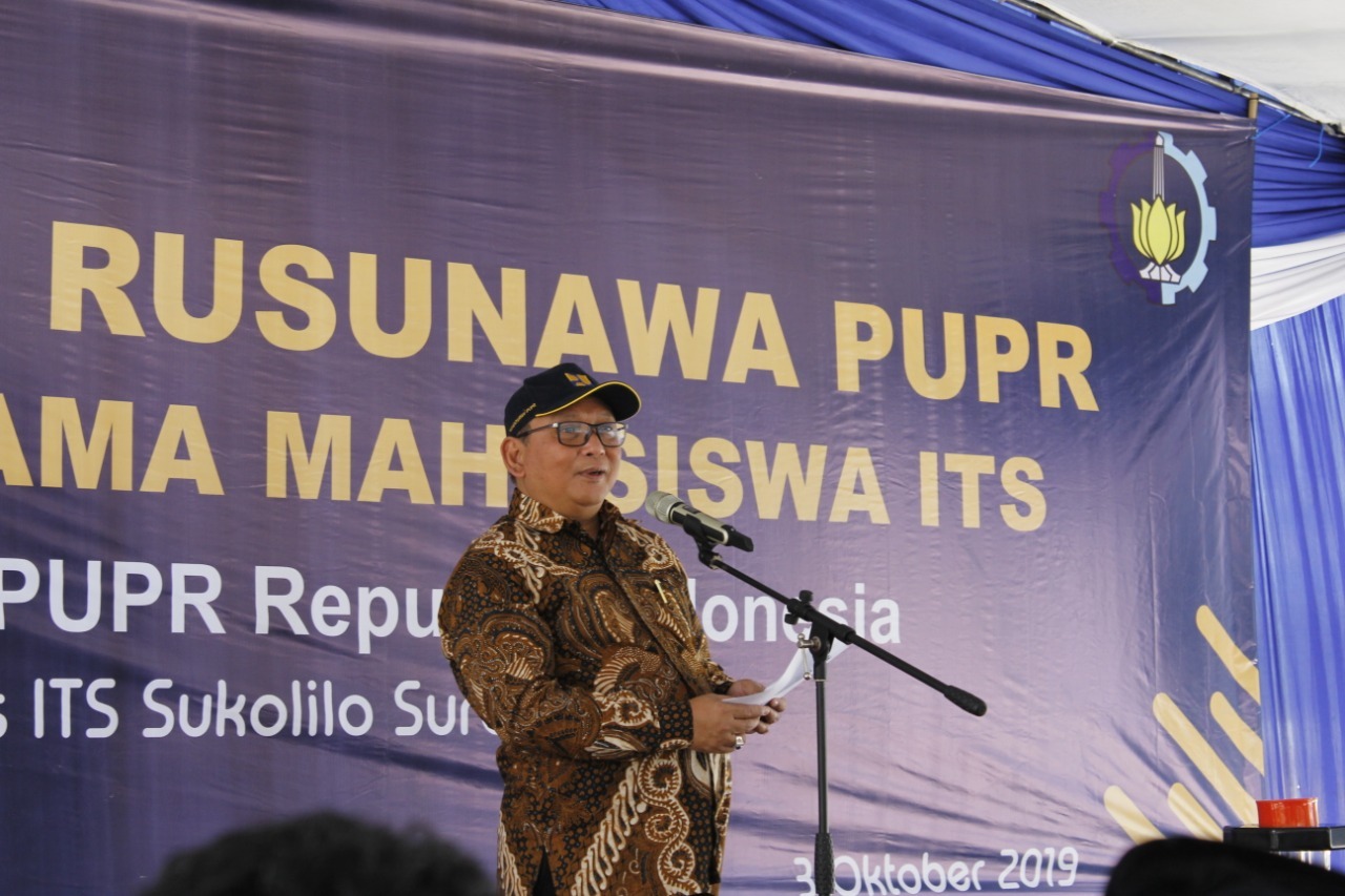 Plt Kepala Balitbang PUPR Ir Lukman Hakim MSc saat memberikan sambutan pada peresmian Rusunawa PUPR Asrama Mahasiswa ITS