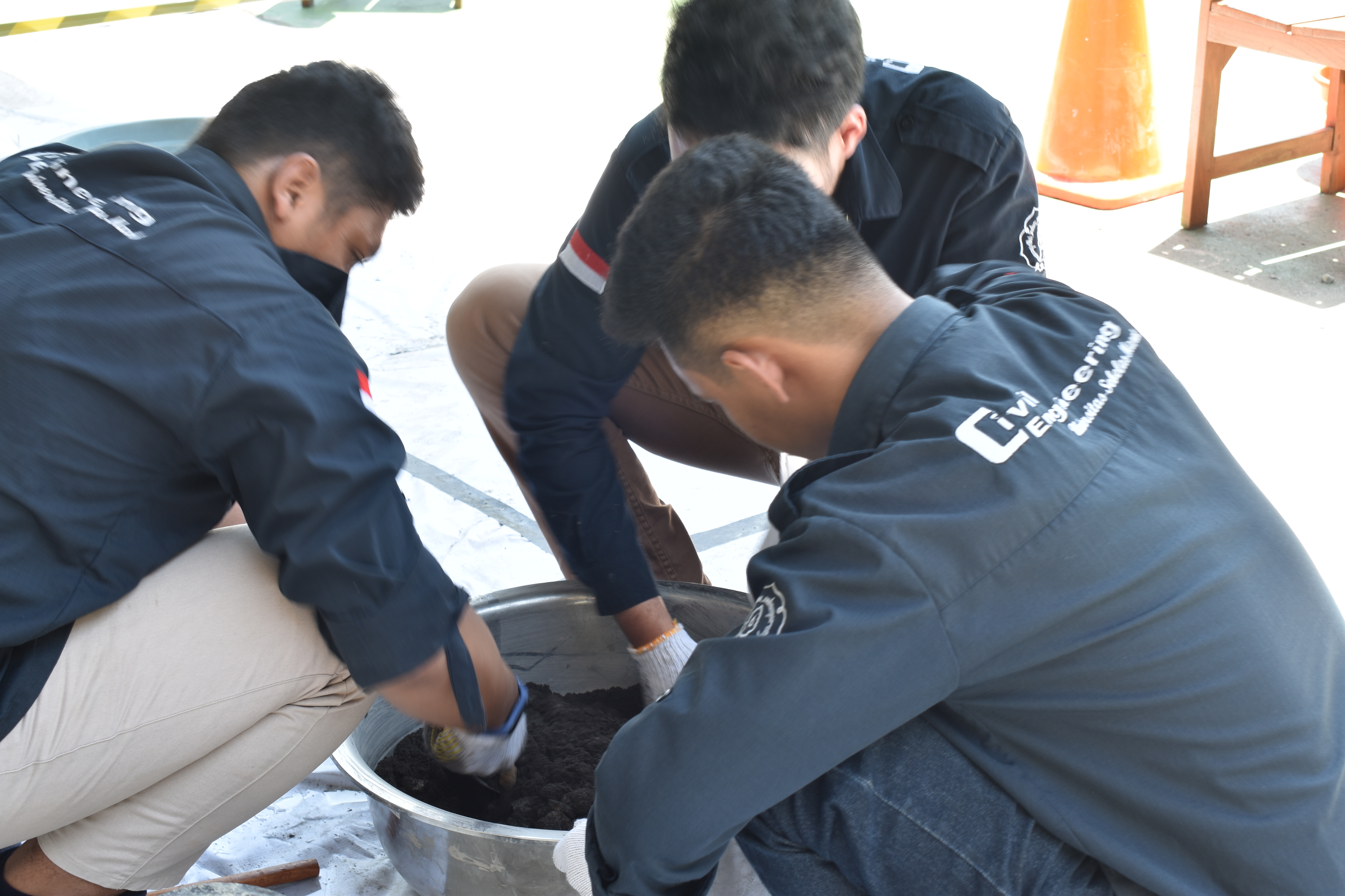 Peserta sedang melakukan pengolahan terhadap inovasi beton mereka sebelum diuji kekuatannya