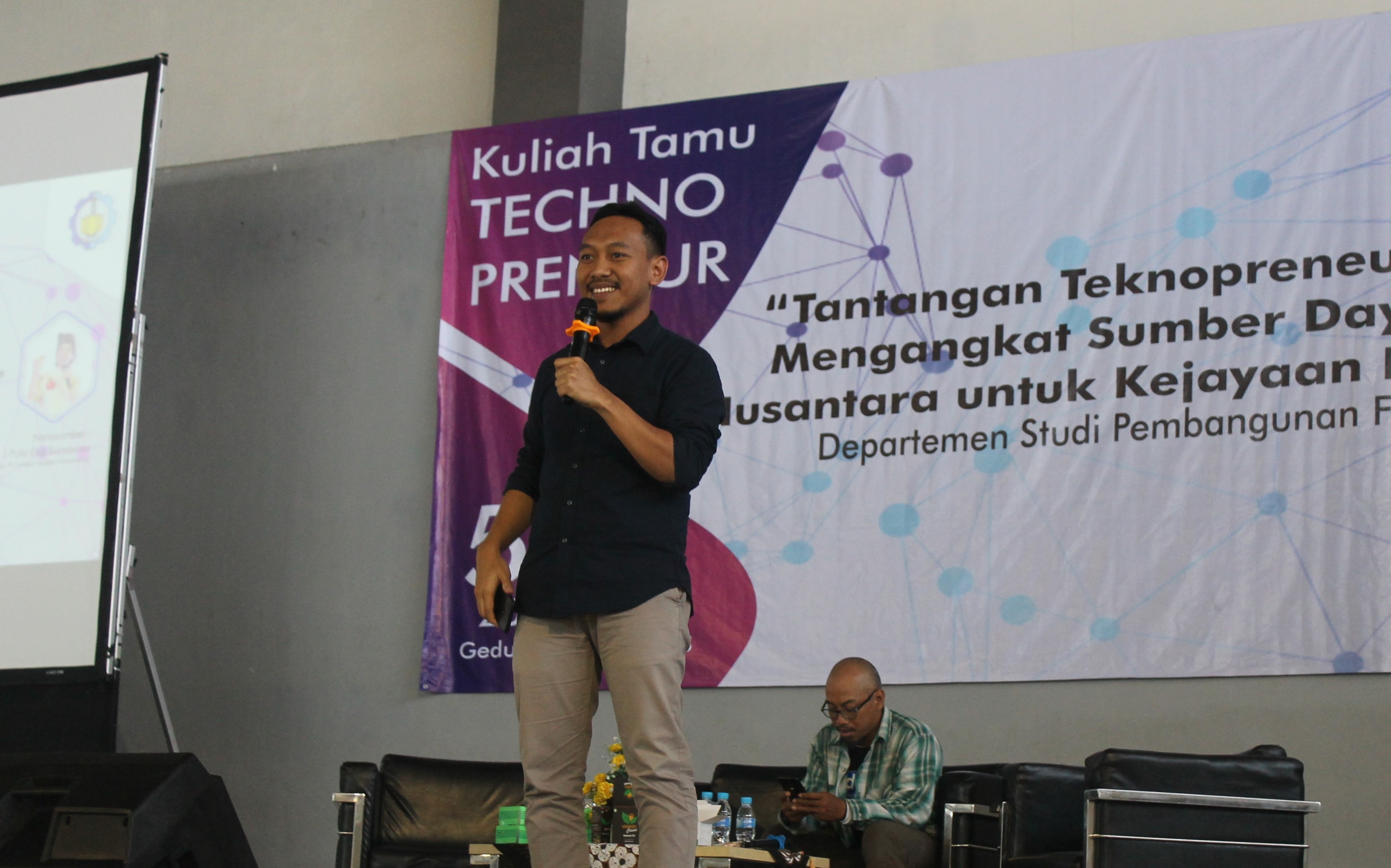 Ghufron Mustaqim, Vice President Sorabel ketika menyampaikan materi dalam kuliah tamu Departemen Studi Pembangunan ITS di Gedung Robotika, 5 Oktober