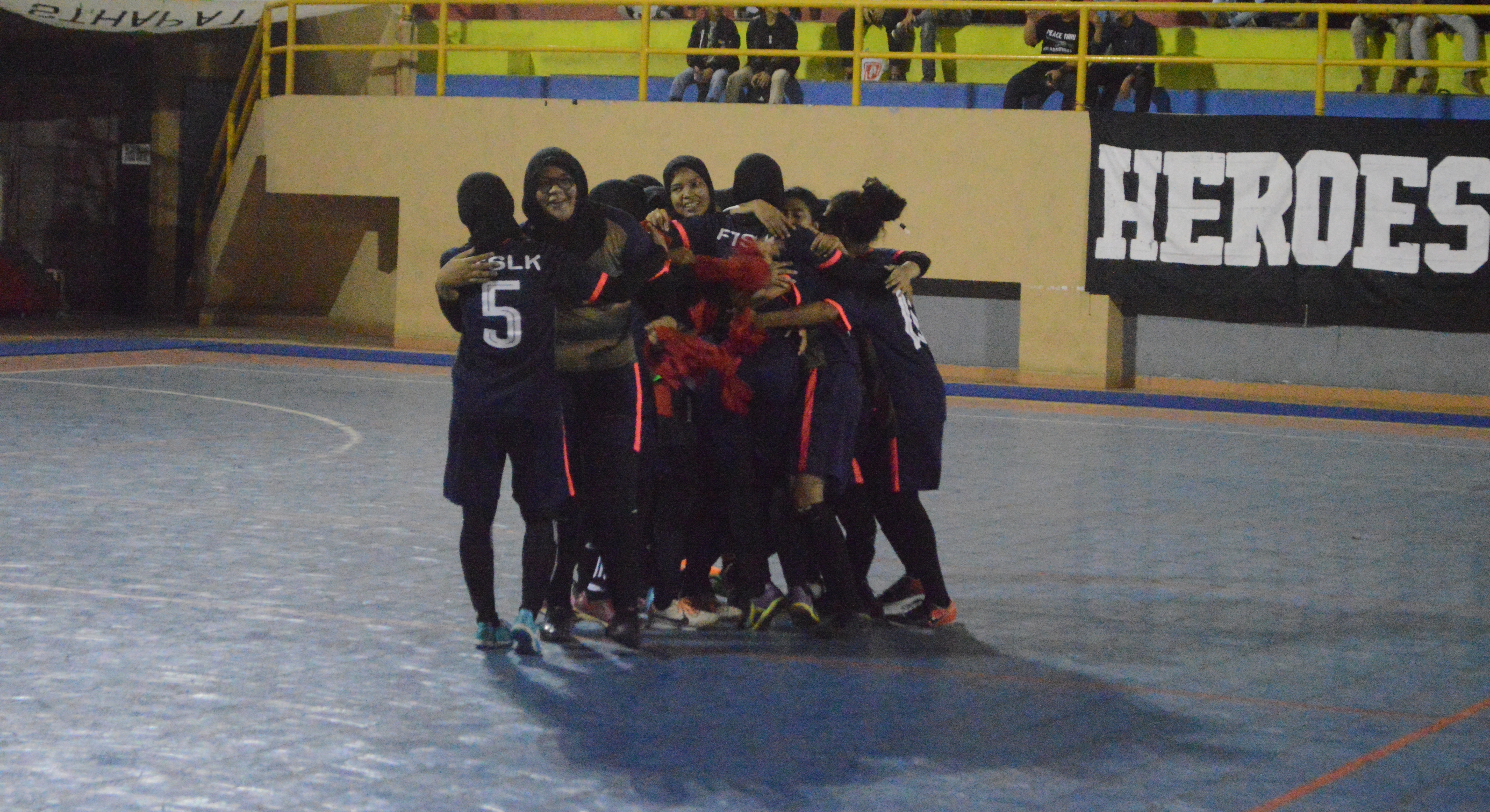 Tim futsal putri FTSLK berpelukan usai kandaskan FADP di final