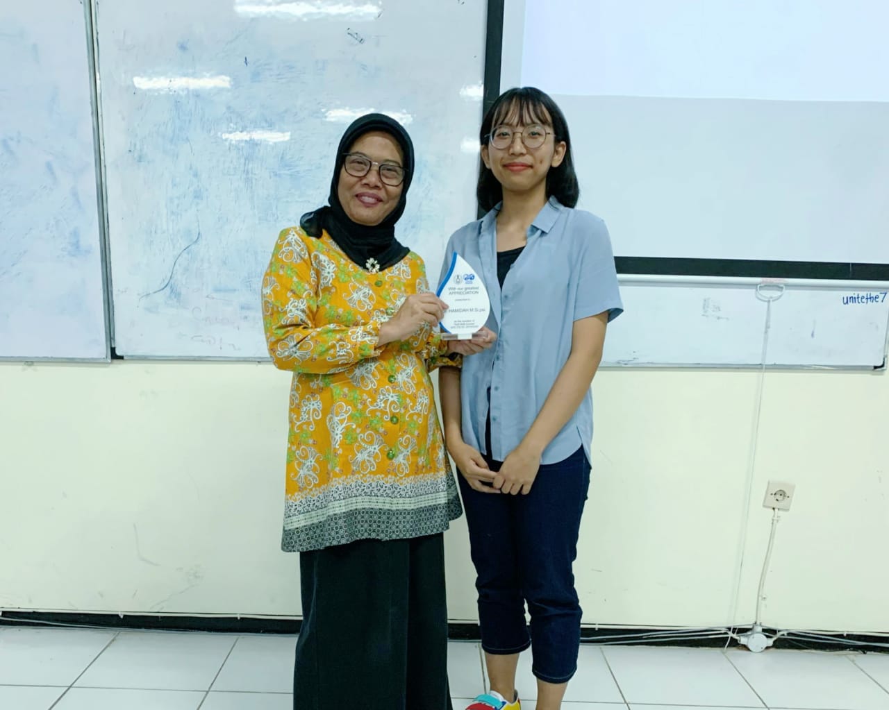 Syarifa Aqila (Kanan) saat pemberian kenang-kenangan kepada Dr Hamidah M Si (kiri)