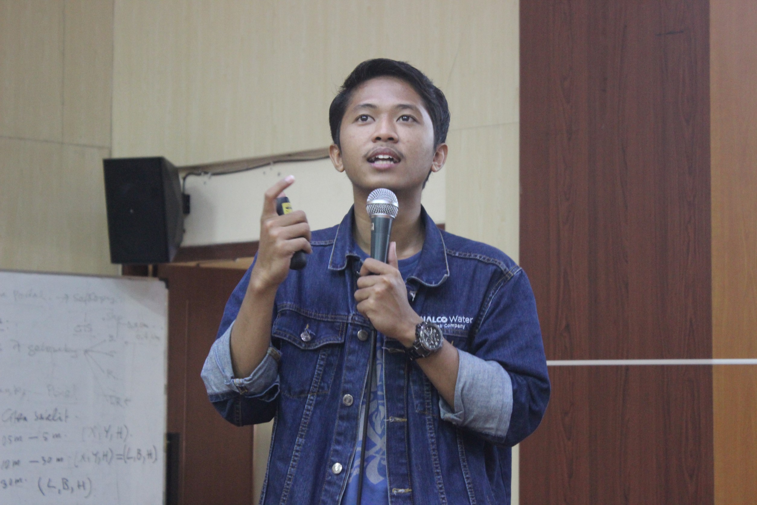 Rofi Arga Hardiansyah ST, Presiden Badan Eksekutif Mahasiswa (BEM) Kabinet Wahana Juang 2017, saat memaparkan materi.