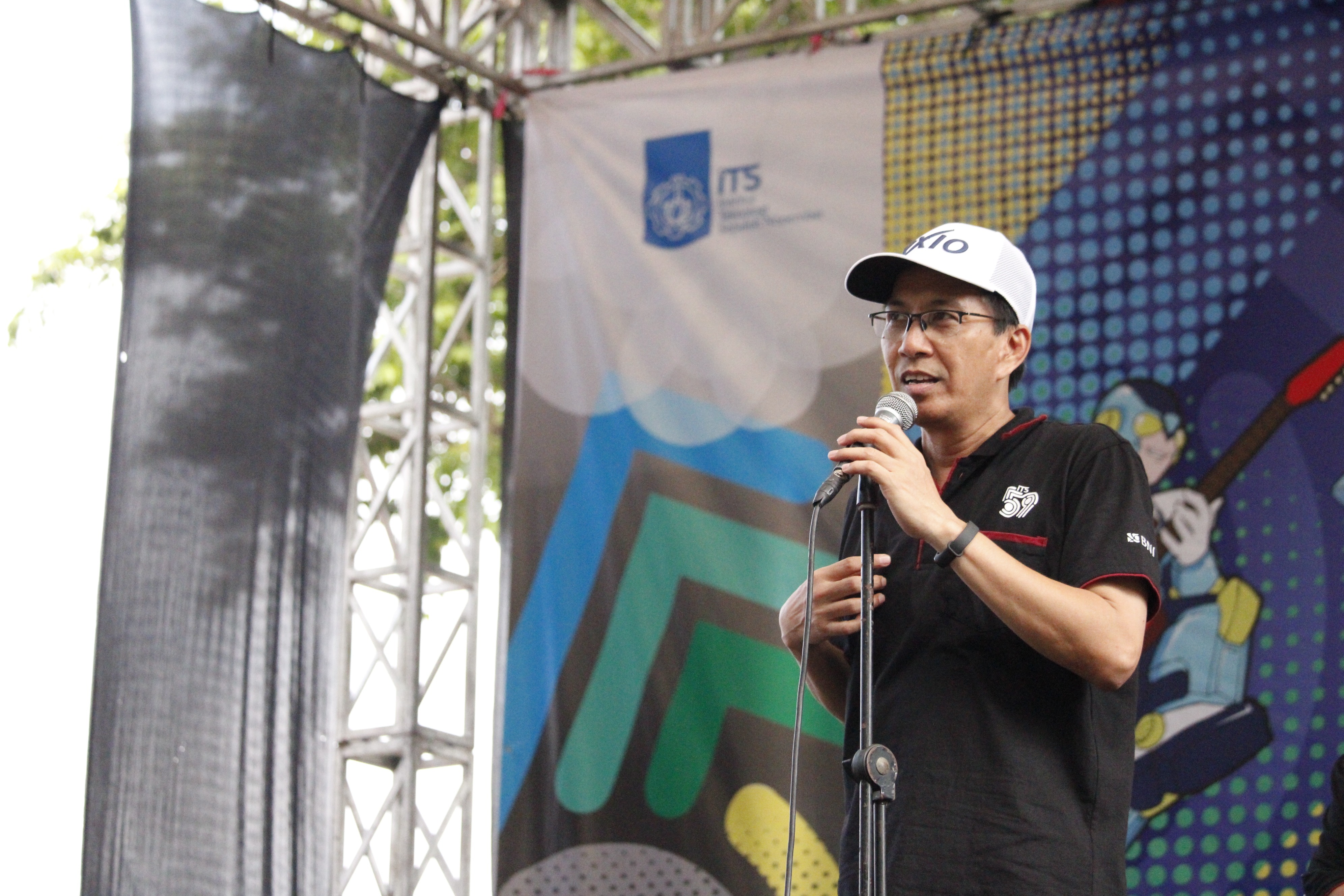 Rektor ITS, Prof Dr Ir Mochamad Ashari M Eng, Memberikan Sambutan pada Acara Jalan Sehat Dies Natalis ITS Ke-59