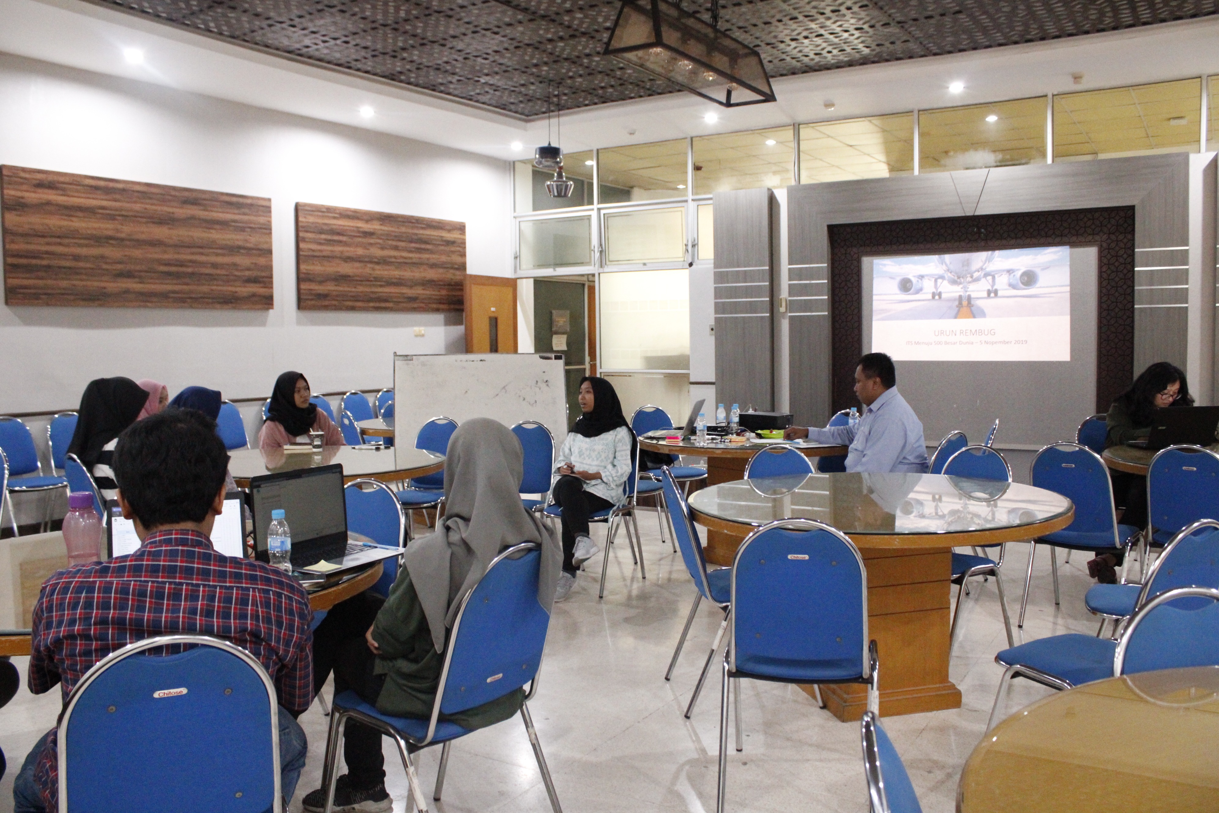Diskusi antara International Office (IO) ITS bersama para mahasiswa dalam Forum Group Discussion (FGD) Internasionalisasi ITS.