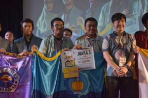 Aufa Nabil Amiri (dua dari kiri) dan Yusuf Umar Hanafi (dua dari kanan) ketika menerima medali perunggu kategori pengembangan perangkat lunak pada GemasTIK 12