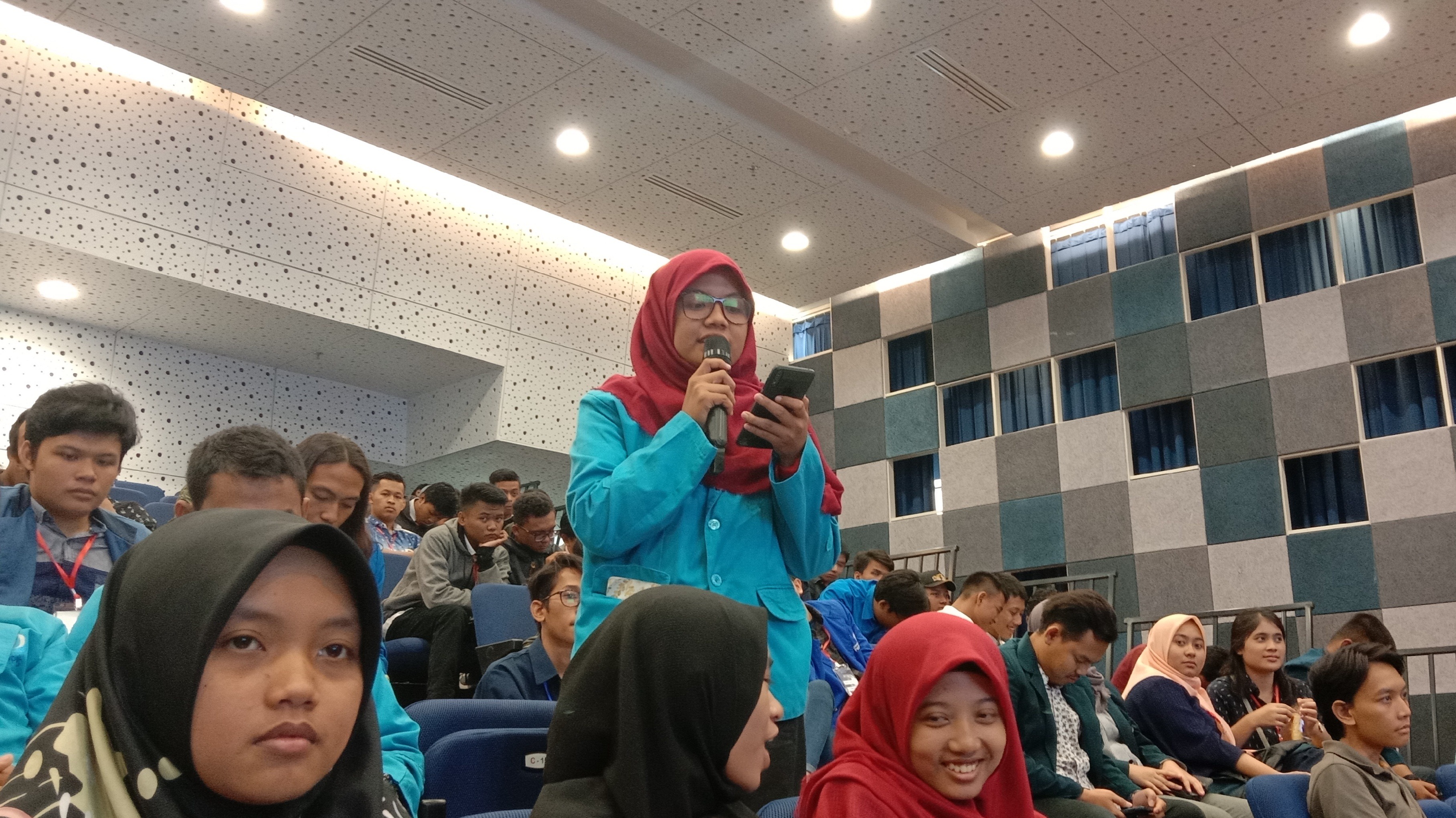 Salah satu peserta saat menyampaikan pertanyaannya kepada narasumber.