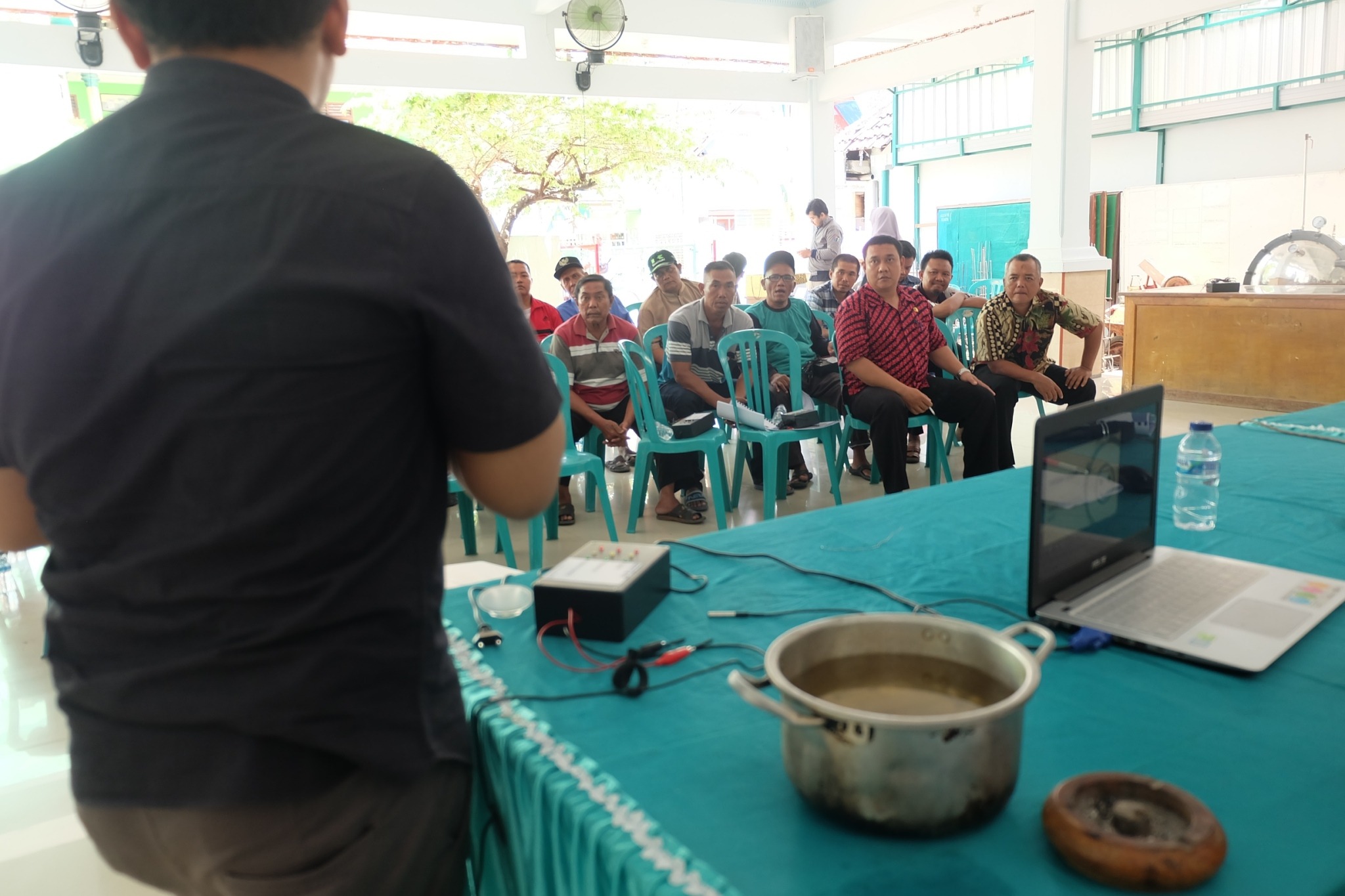 Kegiatan penyuluhan alat monitoring kualitas air tambak pada petambak di desa Banjar