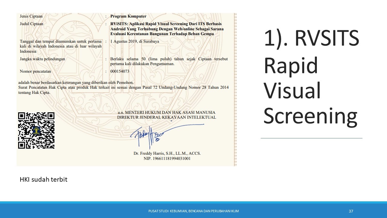 Aplikasi RViSITS untuk asesmen cepat kerentanan bangunan terhadap gempa sebagai salah satu produk unggulan dari PSKBPI ITS