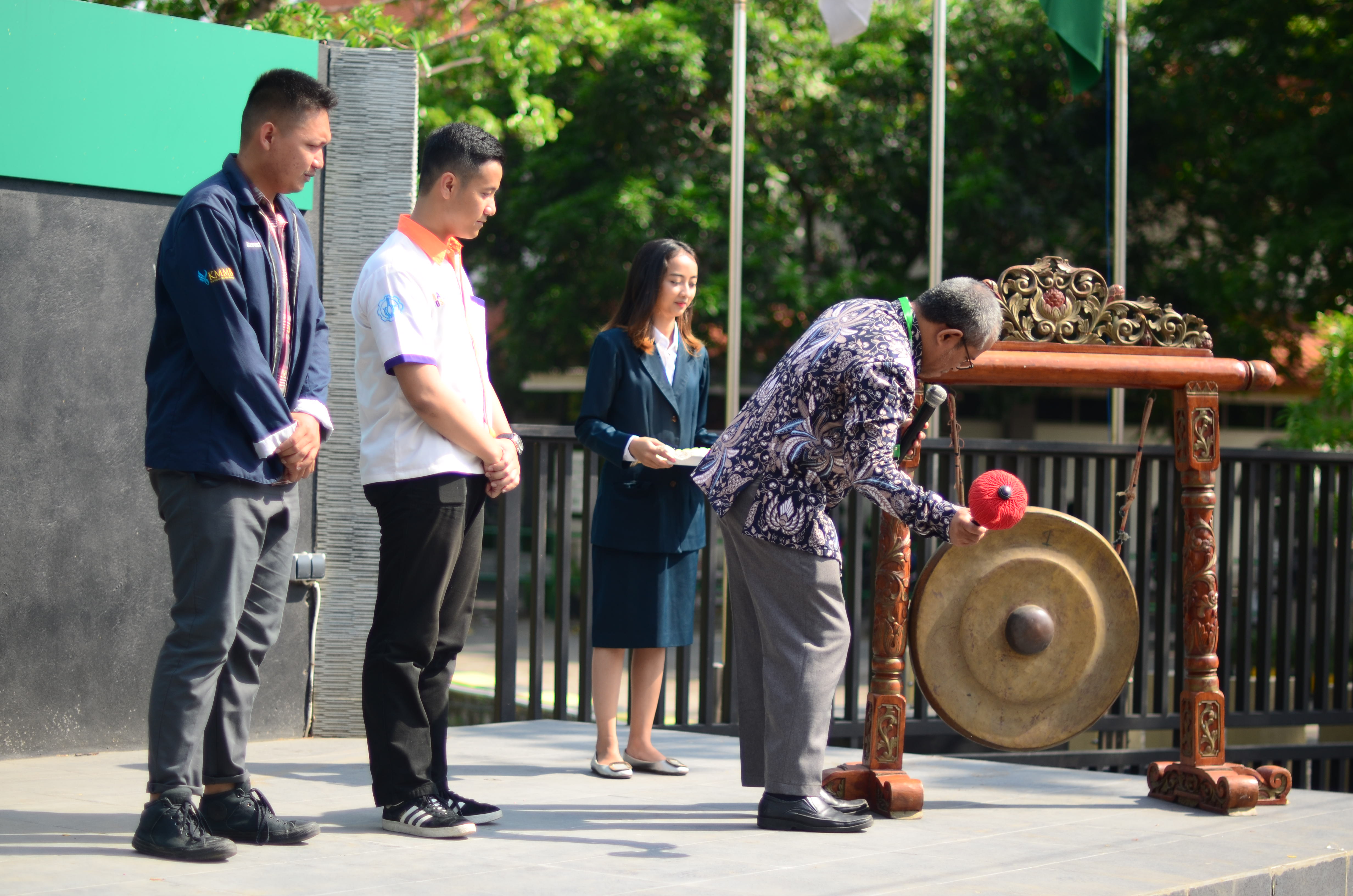 Kepala Departemen Manajemen Bisnis ITS, Imam Baihaqi ST MSc PhD, ketika memukul gong sebagai tanda dibukanya Manifest 2019.