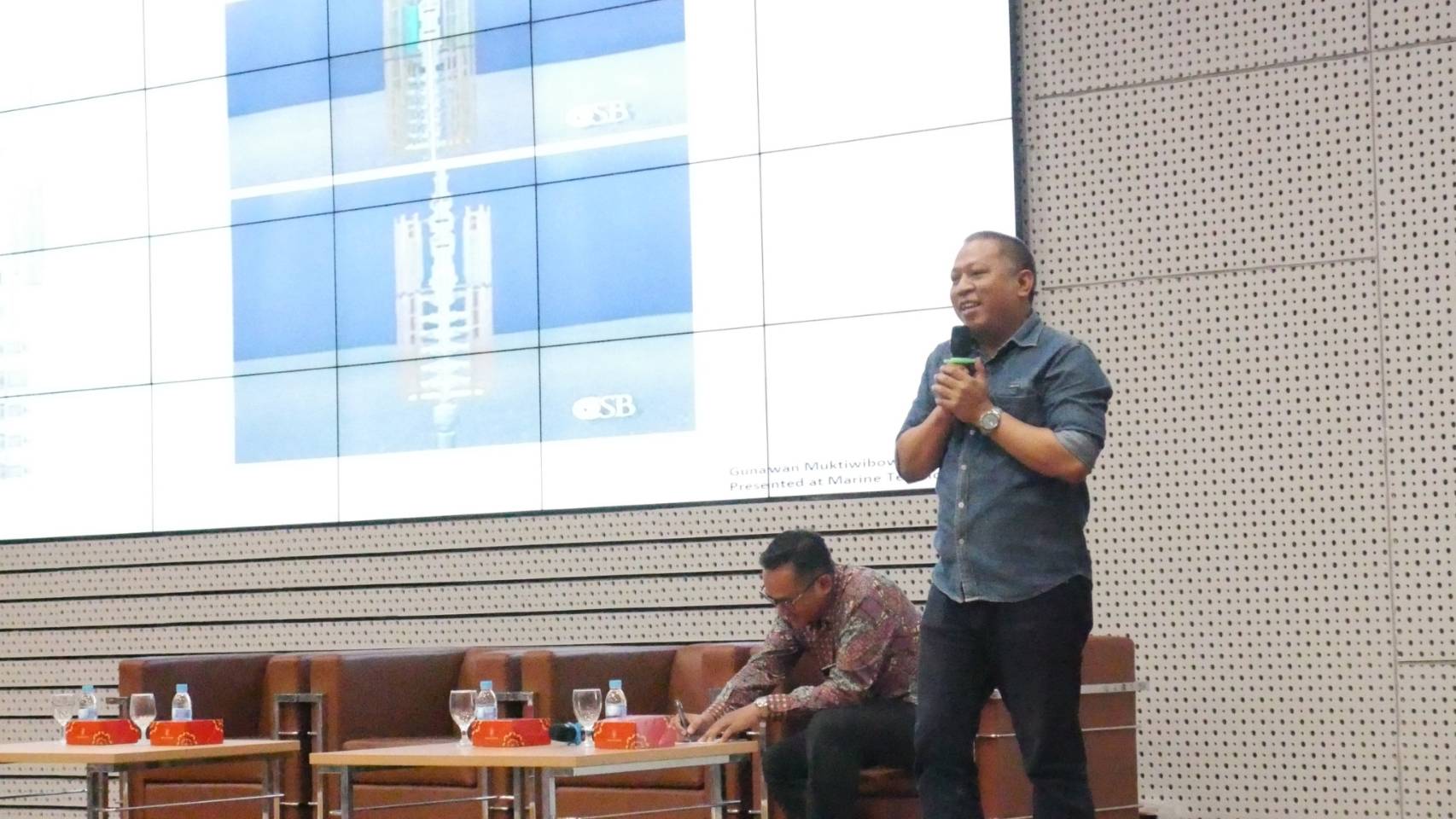 Gunawan Raharjo Muktiwibowo saat membeberkan materi tentang pemasangan anjungan lepas pantai (oil platform)