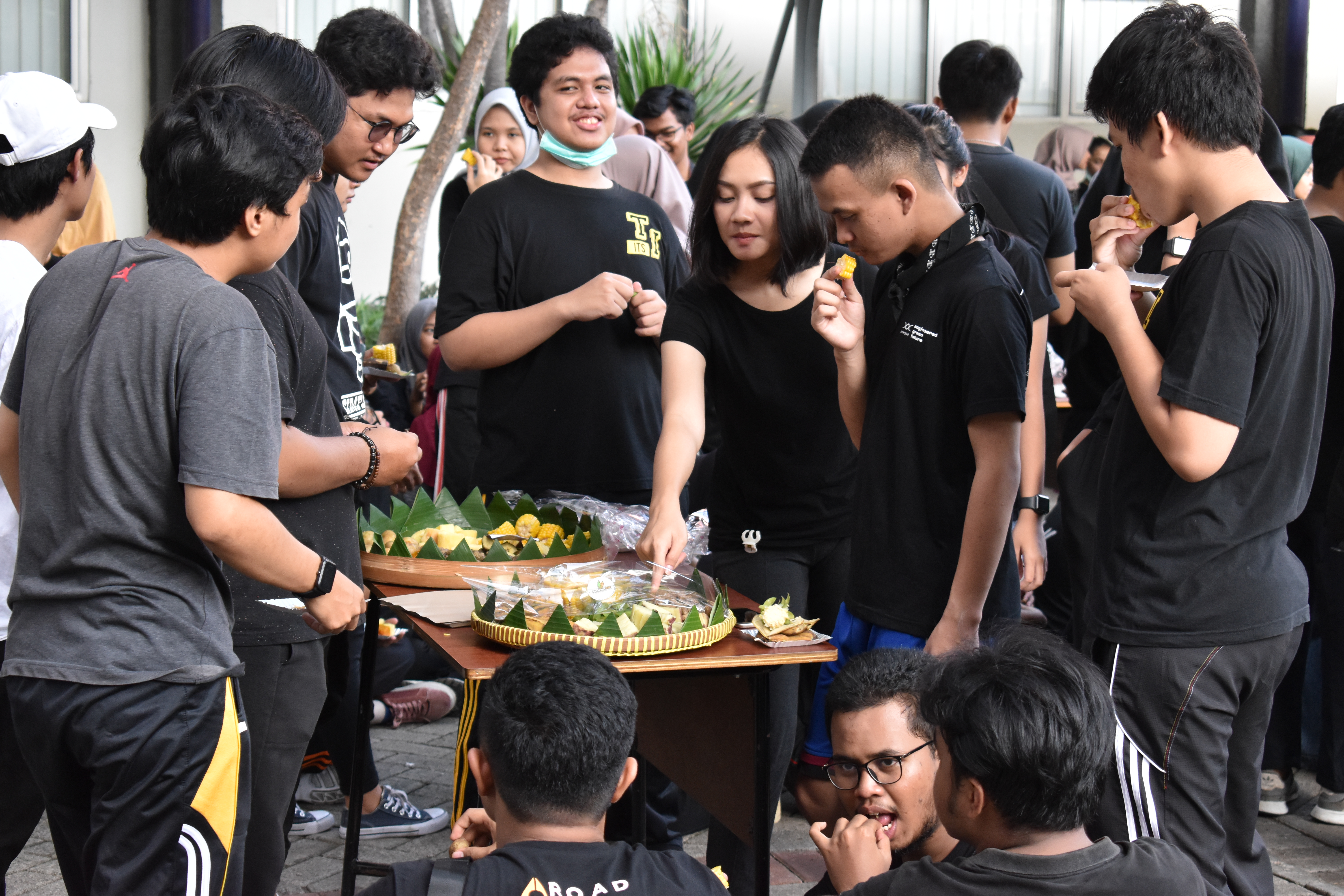 Beberapa mahasiswa terlihat lahap dalam mencoba rasa dari makanan Polo Pendem