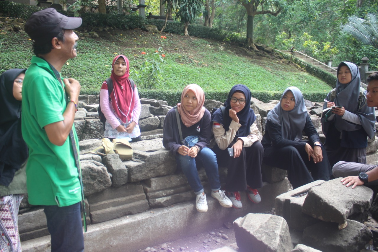 Drs Mudzakir Dwi Cahyono MHum ketika memaparkan sejarah situs-situs yang dikunjungi selama fieldtrip berlangsung