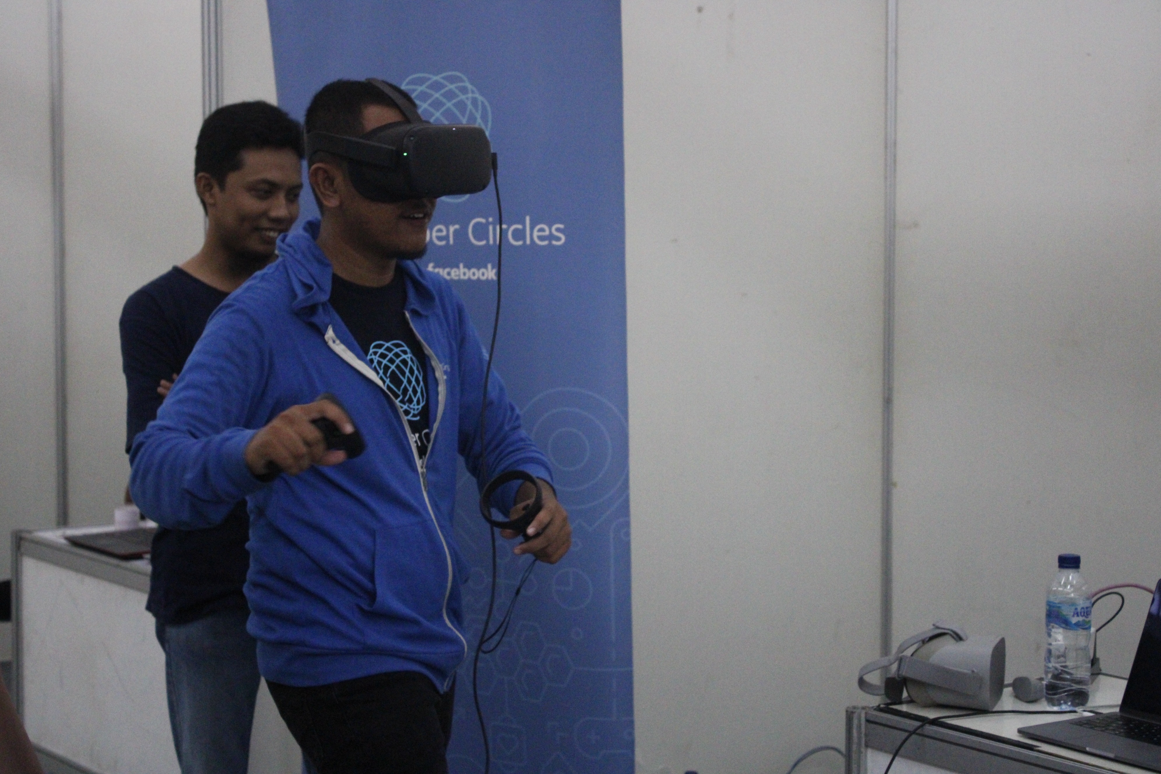 Keseruan pengunjung yang nampak ketika mencoba VR di salah satu komunitas di EXPLOIT
