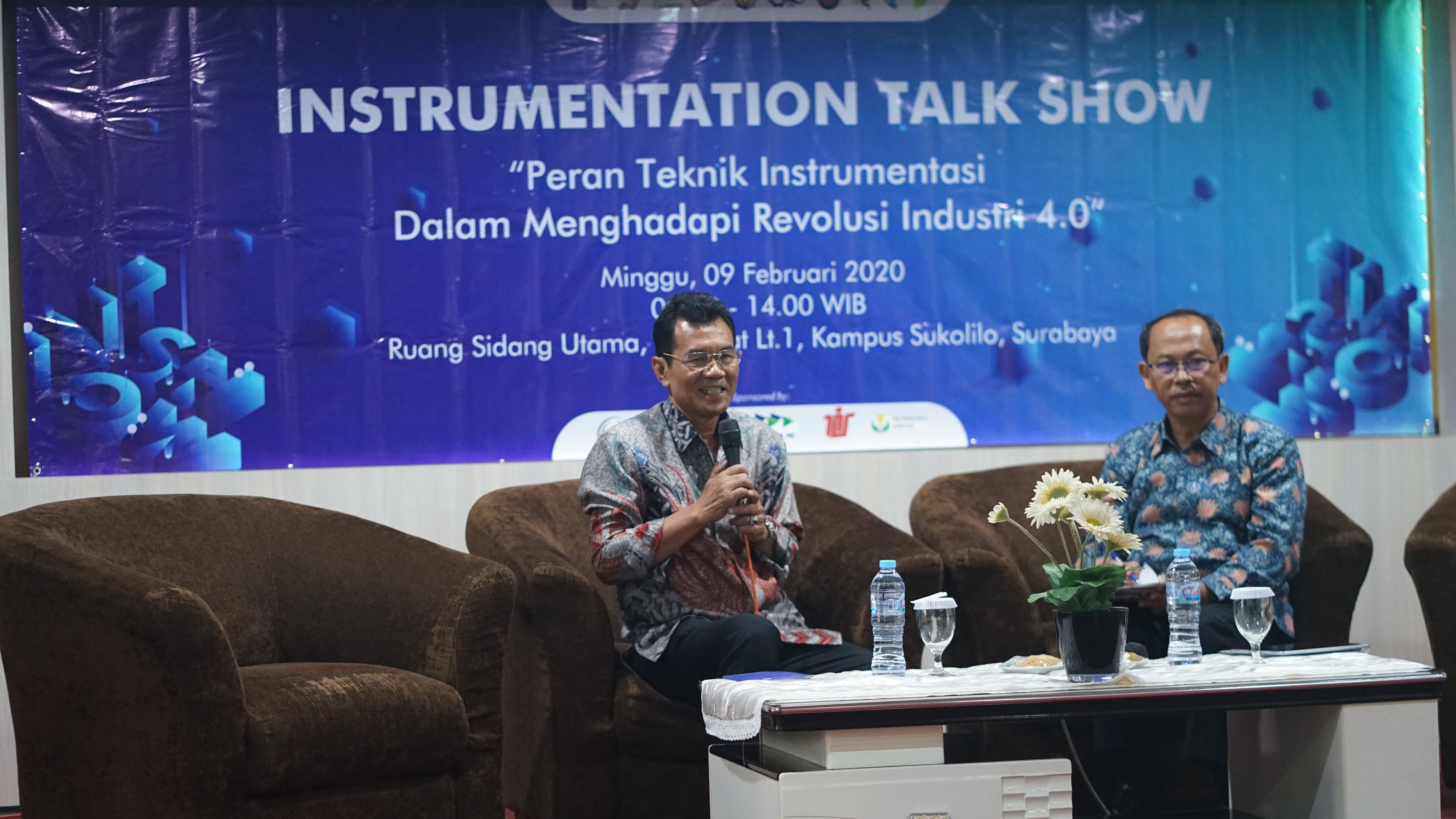 Dr Sukaryantho MSi (kiri), Kepala Dinas Pendidikan Wilayah Kota Surabaya hadir memberikan materi dalam INTSHOW bersama Dr Ir Totok Soehartanto DEA, Kepala Departemen Teknik Instrumentasi sebagai moderator.