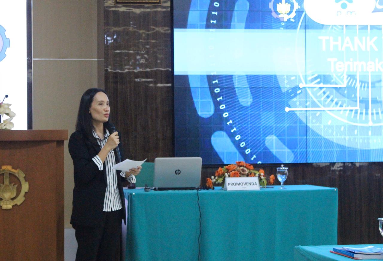 Tita Karlita saat mempresentasikan disertasinya pada Sidang Terbuka Promosi Doktor di DepartemenTeknik Elektro ITS