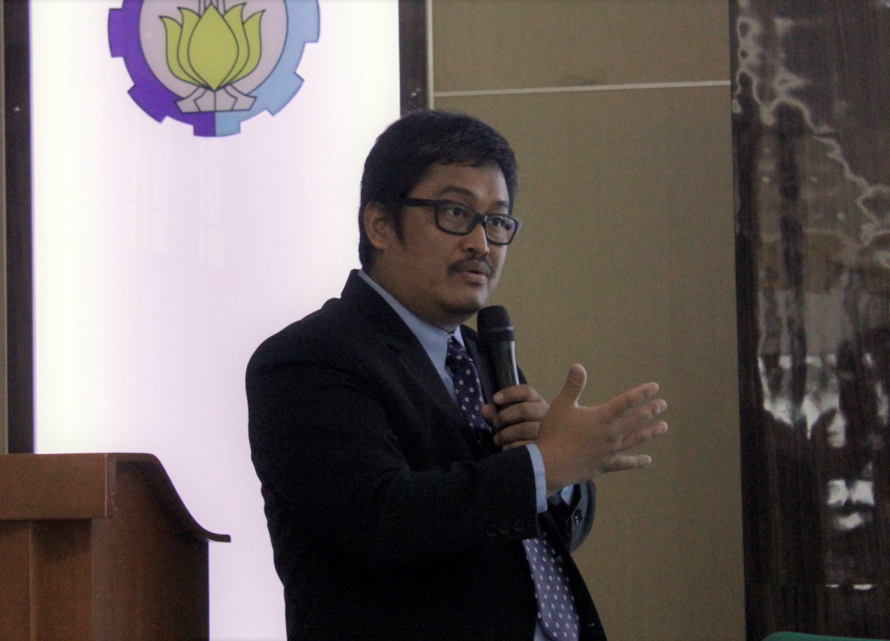 Meidya Koeshardianto saat memaparkan hasil disertasinya pada Sidang Terbuka Promosi Doktor di Departemen Teknik Elektro ITS