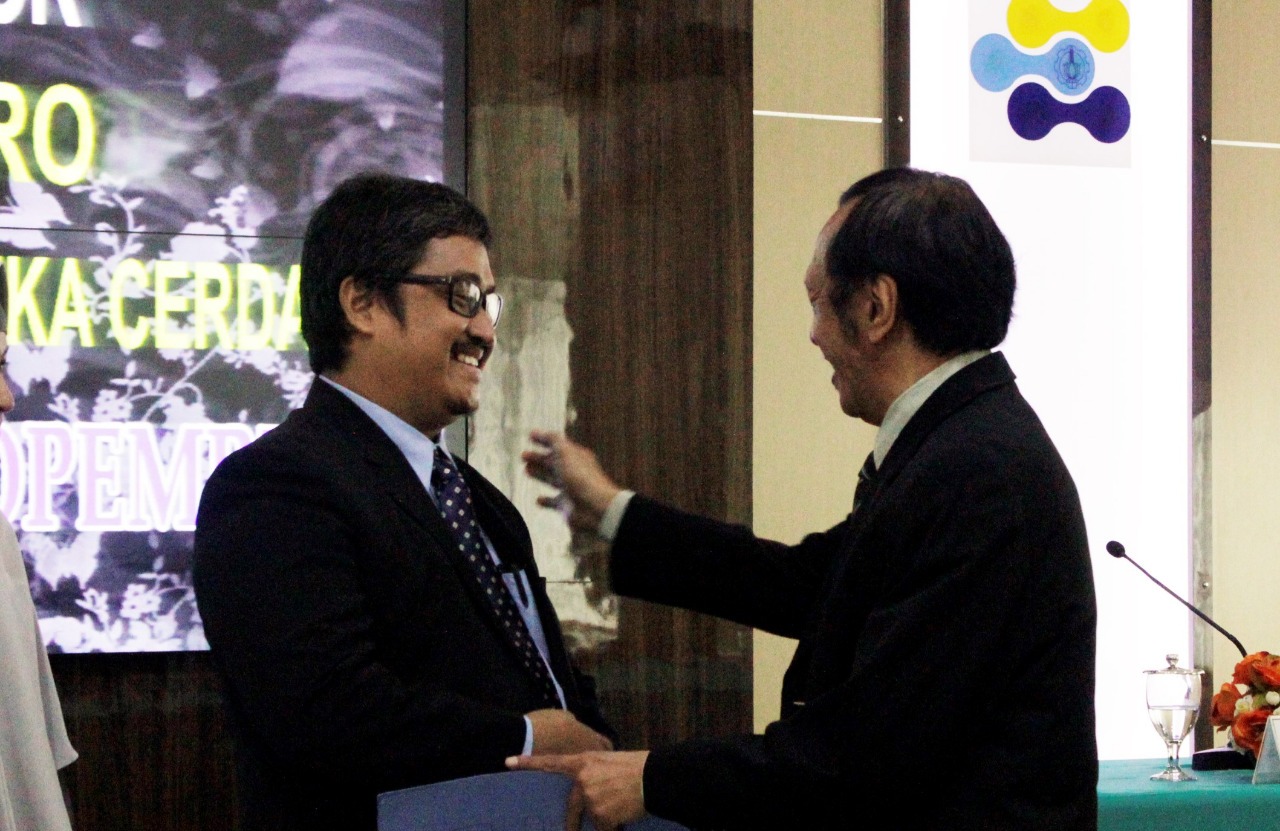 Meidya Koeshardianto (kiri) seusai Sidang Terbuka Promosi Doktor di Departemen Teknik Elektro ITS
