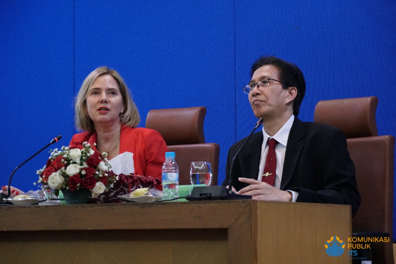 Menteri Infrastruktur dan Manajemen Air Belanda Cora van Nieuwenhuizen (kiri) bersama Rektor ITS Prof Mochamad Ashari mengaku bahagia dapat mengunjungi Indonesia kali pertama