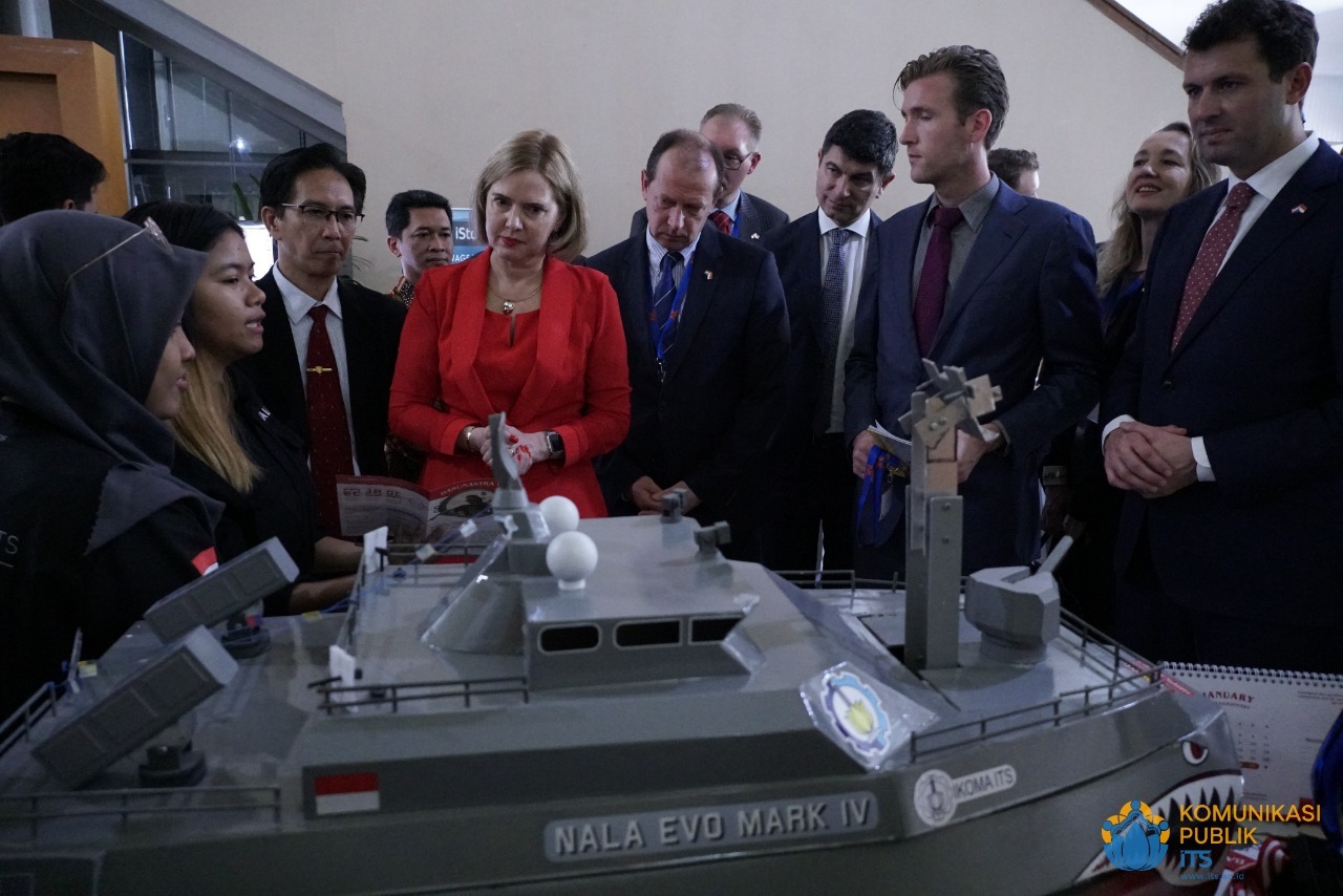 Usai penandatanganan, seluruh delegasi dari Belanda ini diajak untuk meninjau pameran produk-produk maritim inovatif dari ITS di gedung Rektorat. Selanjutnya, rombongan diajak mengunjungi gedung baru Departemen Teknik Transportasi Laut ITS. Bukan tanpa alasan, hal ini karena departemen yang resmi didirikan pada tahun 2011 ini turut mendapat campur tangan pihak Pemerintah Belanda sejak awal pendiriannya.
