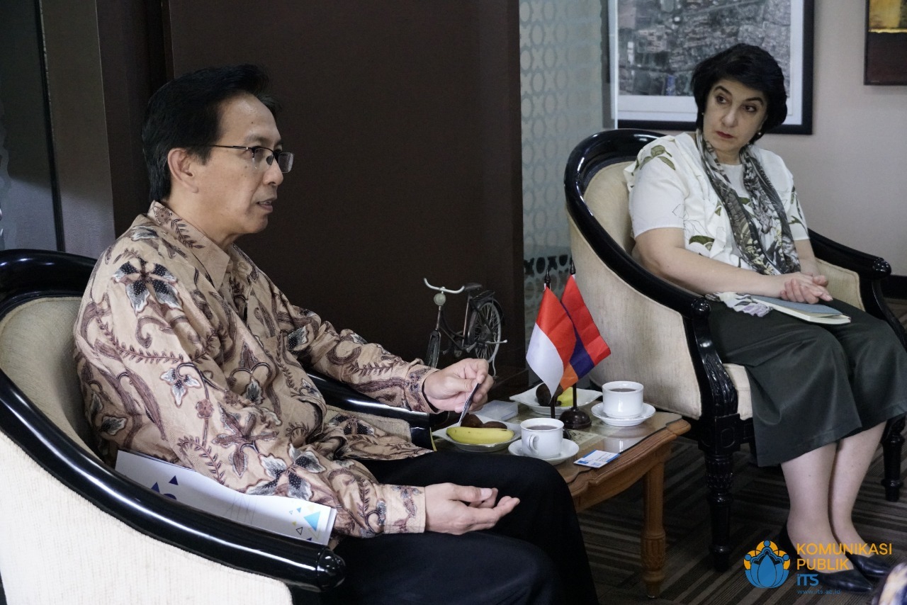 Rektor ITS Prof Mochamad Ashari (kiri) didampingi Duta Besar Armenia Dziunik Aghajanian saat memimpin diskusi di ruang rektor