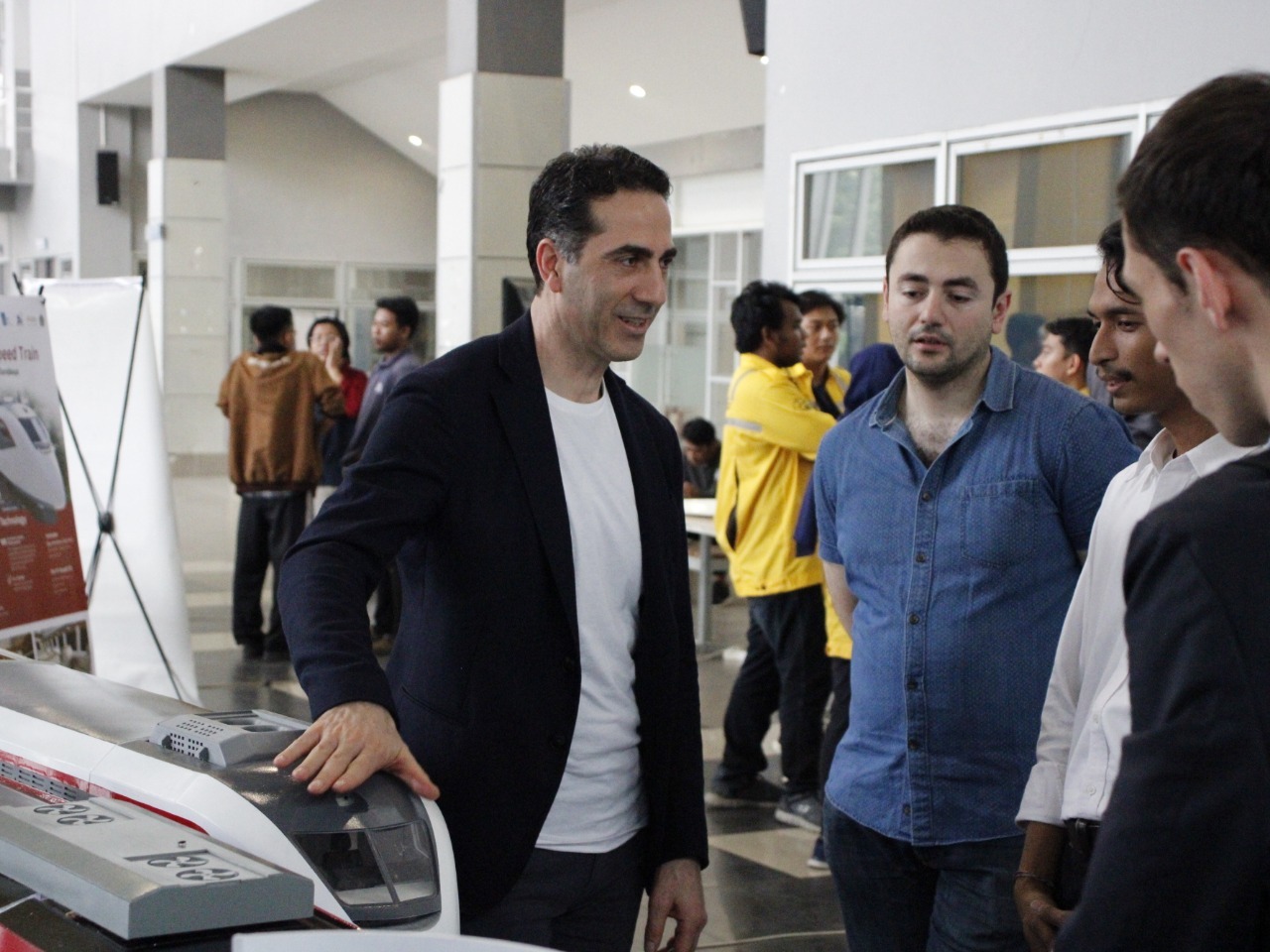 Armen Orujyan, Founding CEO dari FAST (kiri) saat meninjau pameran produk inovatif ITS di Gedung Pusat Robotika ITS