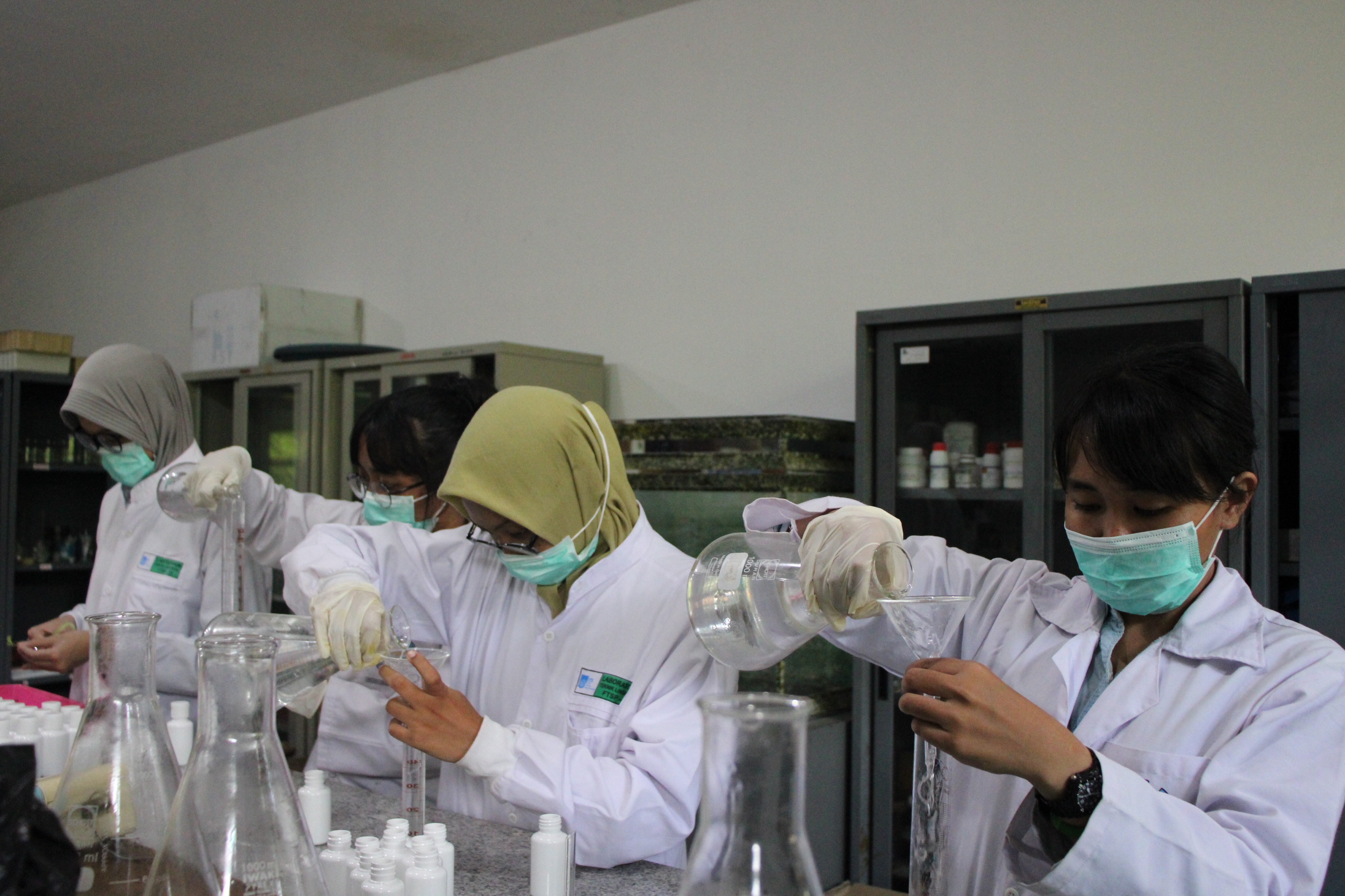 Suasana produksi hand sanitizer di Laboratorium Kimia Mikroorganisme, Departemen Kimia ITS