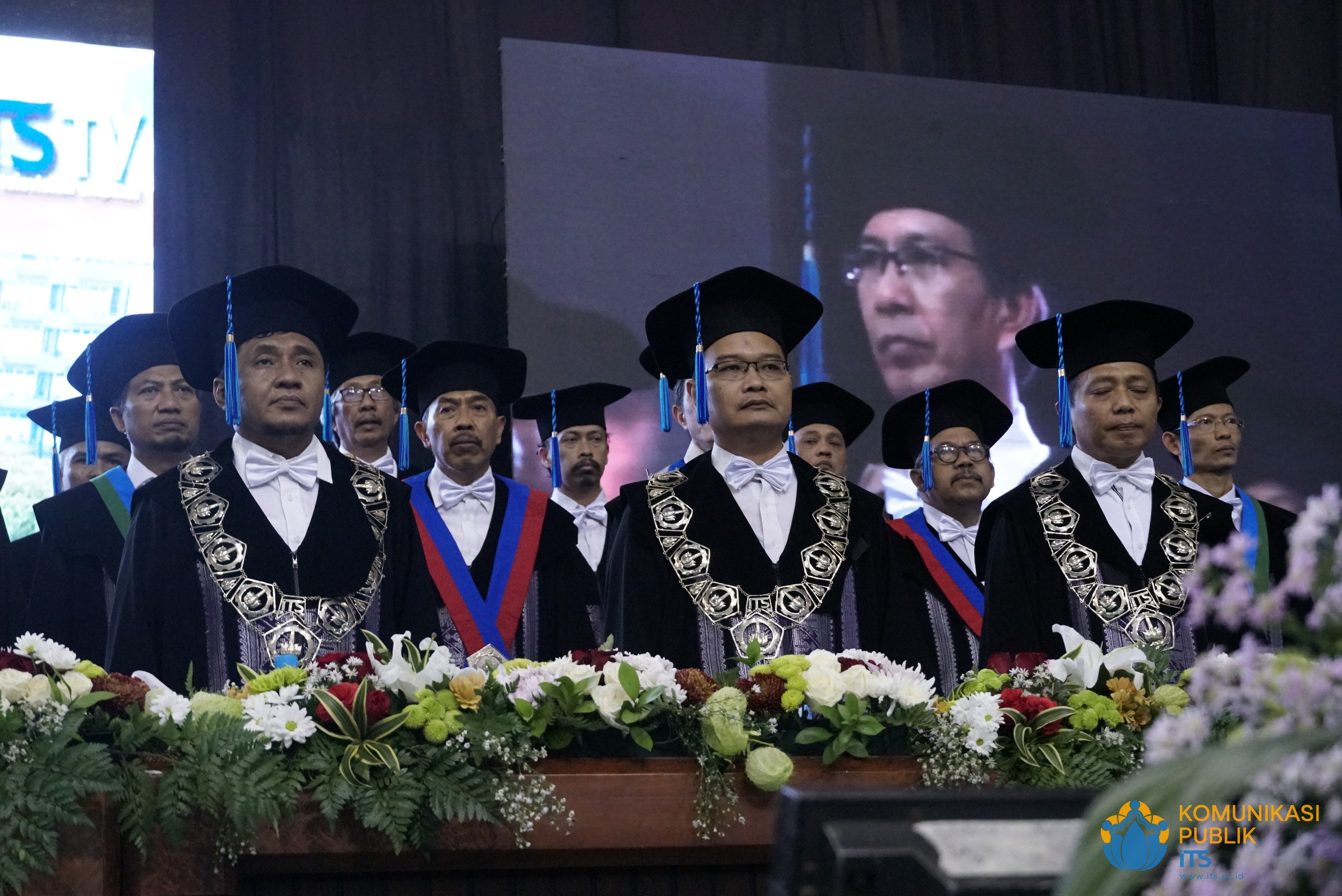 Sekretaris Institut (Sekits) ITS, Dr Suhartono SSi MSc (depan tengah) bersama jajaran petinggi ITS dalam prosesi Wisuda ke-121, Sabtu (14/3)