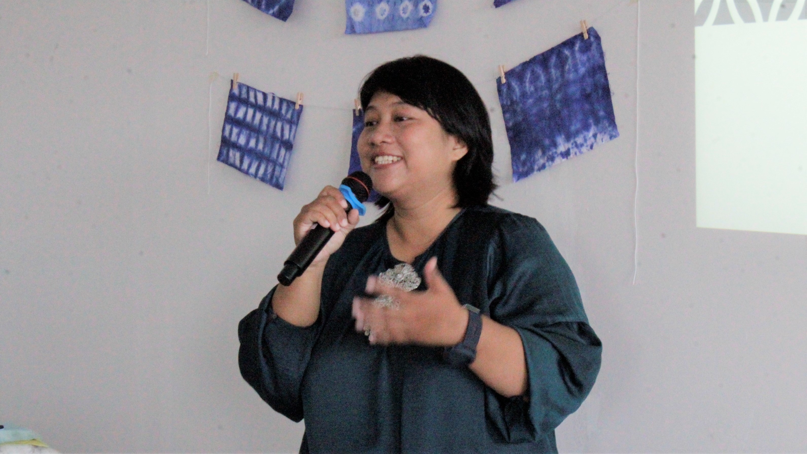 Lea Kristina Anggraeni ST MDs saat memaparkan mengenai teknik tie dye.