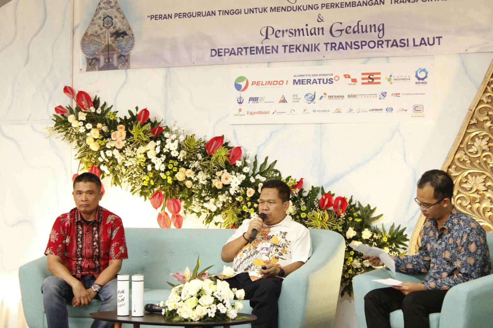 Kampus ITS, ITS News — Bentangan lautan luas yang mengisi wilayah Indonesia menjadikan moda transportasi laut berperan besar sebagai penggerak kemajuan dalam berbagai sektor. Dalam hal ini, Departemen Teknik Transportasi Laut Institut Teknologi Sepuluh Nopember (ITS) turut mengundang Ir Subagiyo sebagai pembicara dalam kuliah tamu bertajuk Dukungan Transportasi Laut terhadap Peningkatan Perekonomian Nasional dalam rangkaian acara peresmian gedung SEA, pada Jumat (13/3) lalu.