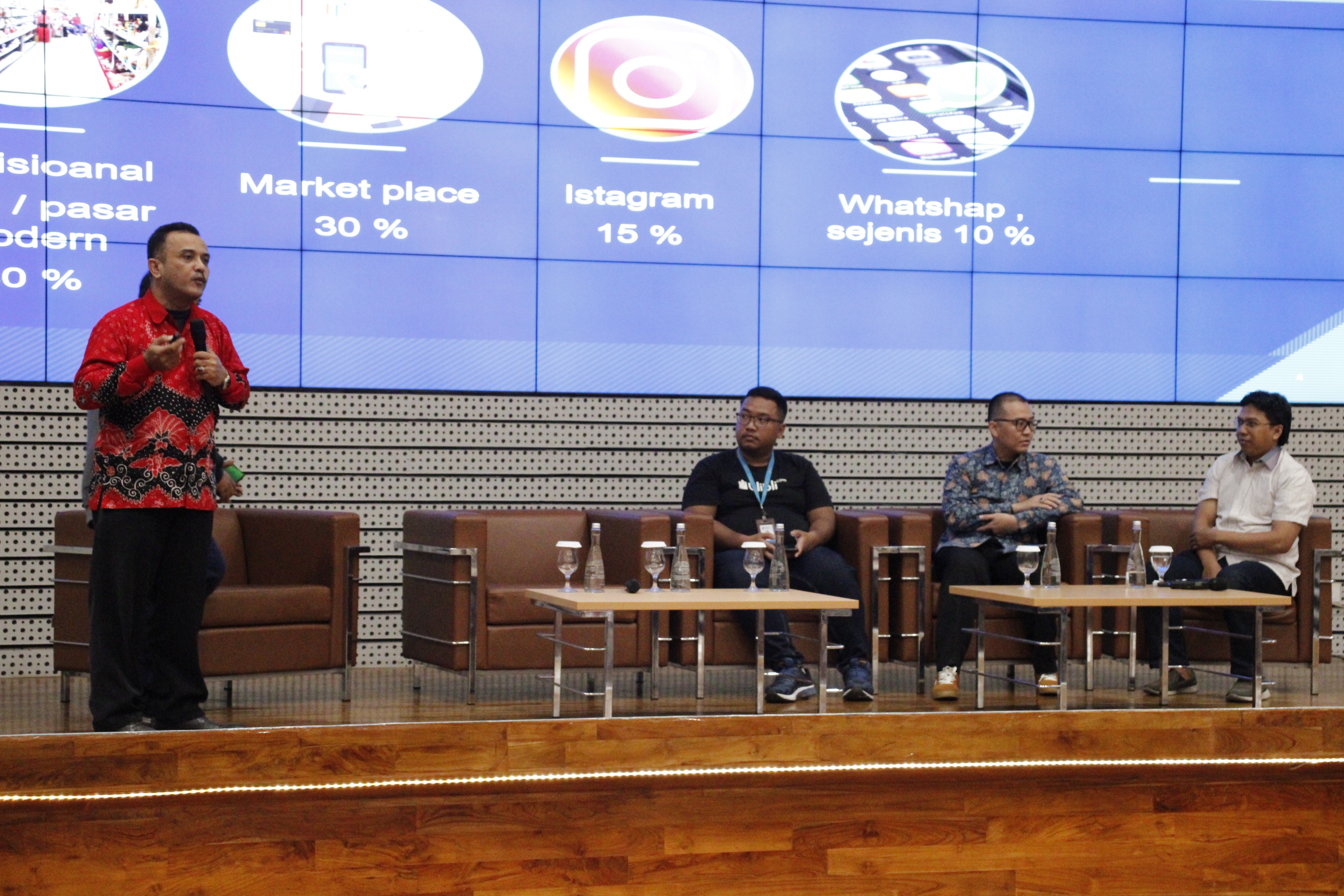 Wakil Rektor IV Bidang Riset, Inovasi, Kerja Sama, dan Kealumnian, Bambang Pramujati ST MScEng PhD ketika memaparkan program ITS untuk membantu UMKM lokal