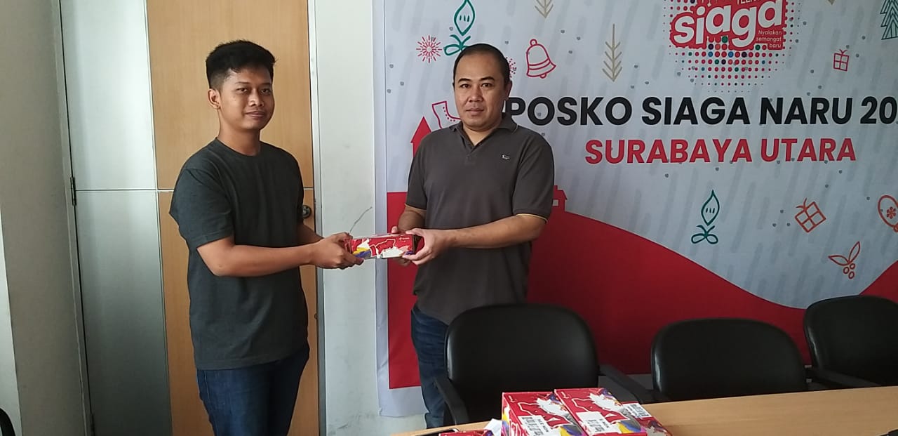 Penyerahan bantuan paket data oleh perwakilan PT Telkomsel yang diterima oleh Aris Purnomo Wijayanto (kanan), Kabag Layanan Kemahaaiswaan Ditmawa ITS
