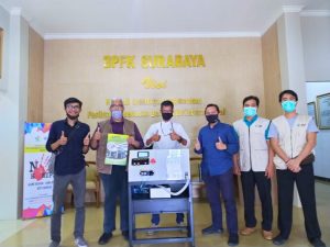Tim Ventilator ITS (dari kiri ke kanan): Iwan Cony S ST MT dan Dr rer nat Ir Aulia M T Nasution MSc beserta petugas BPFK, Tri Dedi Setyawan dan direktur DRPM ITS, Agus M Hatta ST MSi PhD