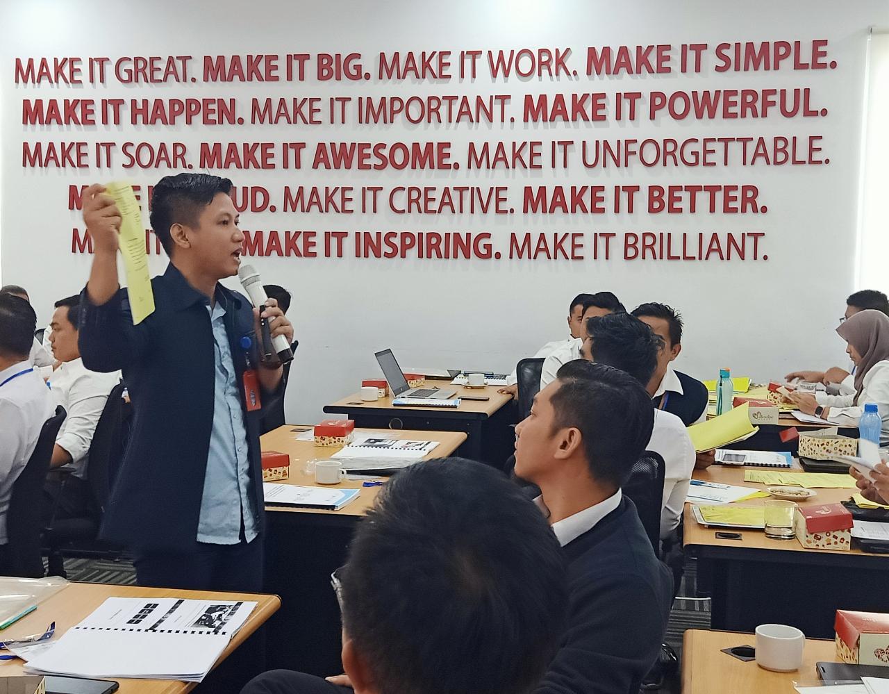 Agus Santoso SSos MMed Kom, pemenang juara pertama pada Lomba Karya Tulis Kearsipan Arsip UGM 2020, saat memberikan training kearsipan.