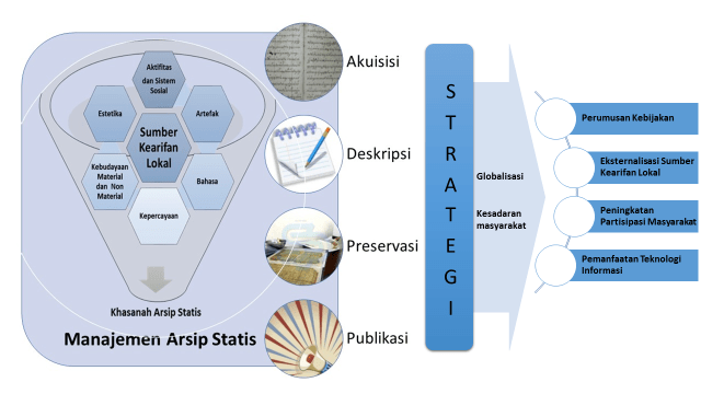 Gambaran strategi khusus yang dapat dilakukan lembaga kearsipan daerah untuk melestarikan sumber kearifan lokal.