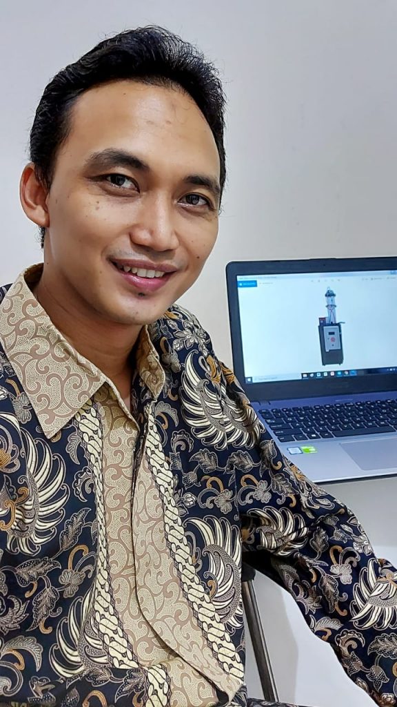 Arief Abdurrakhman ST MT dengan tampilan alat Pemurnian Biogas buatannya di layar laptop