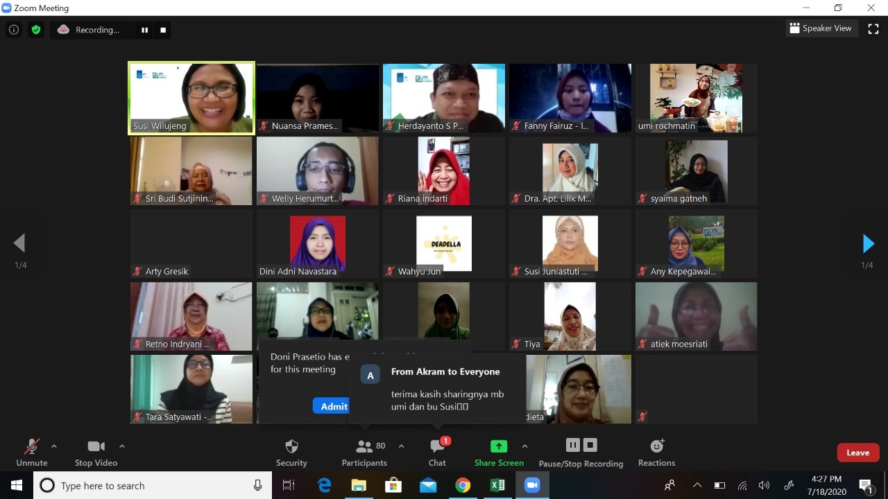 Webinar bertajuk Memasak Sehat, Lokal dan Organik, yang diadakan Sabtu, (18/7) lalu via zoom.