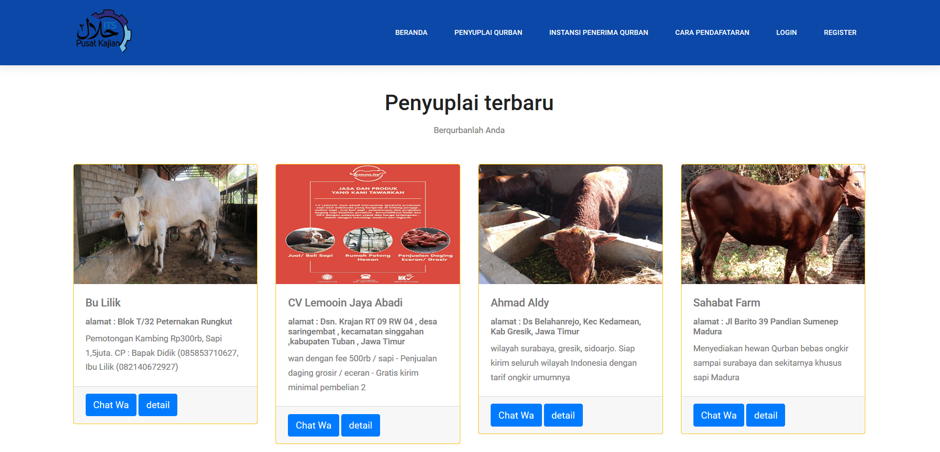 Tampilan penyuplai yang bergabung pada program Tebar Qurban pada web resmi Pusat Kajian Halal ITS