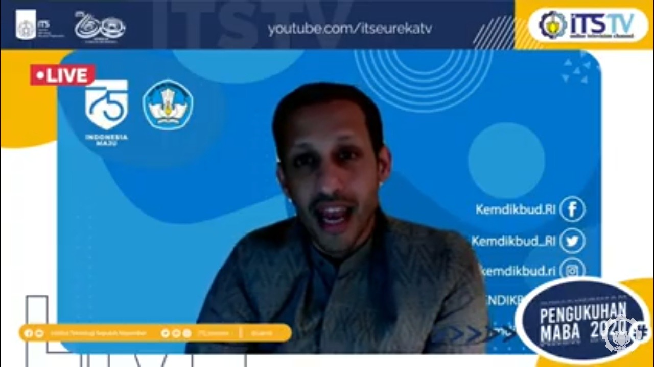 Sambutan Menteri Pendidikan dan Kebudayaan (Mendikbud) Nadiem Anwar Makarim yang dihadirkan secara virtual pada Pengukuhan Mahasiswa Baru ITS 2020