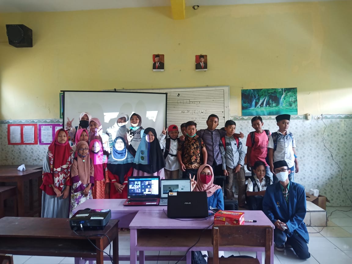 Gresik, ITS News — Umumnya kegiatan Kuliah Kerja Nyata (KKN) dilakukan di suatu tempat tertentu dimana mahasiswa terjun langsung untuk membantu menyelesaikan permasalahan di masyarakat. Namun, kondisi pandemi Covid-19 membuat tim Kuliah Kerja Nyata Tematik (KKNT) Institut Teknologi Sepuluh Nopember (ITS) kelompok 19 melakukan suatu terobosan yang berbeda. Dengan memadukan metode daring dan luring, 12 mahasiswa dari lokasi yang berbeda-beda berupaya membantu berjalannya kegiatan pendidikan sekolah dasar di Kabupaten Gresik.