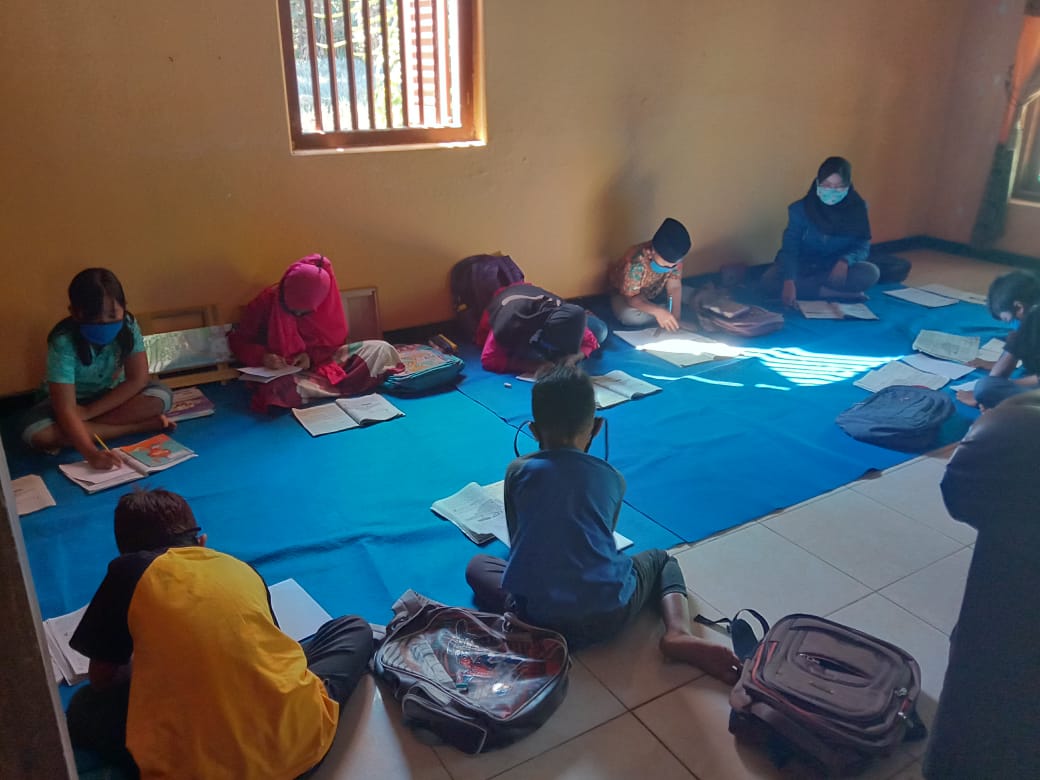 Pendampingan pembelajaran di salah satu rumah siswa SD di Kediri