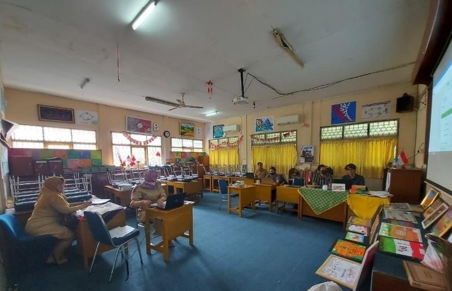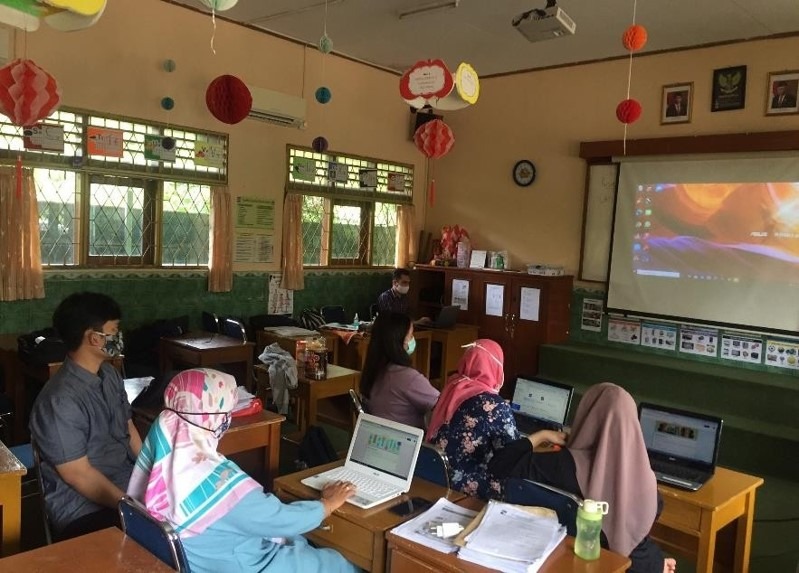 Suasana pendampingan guru SDN Sukadamai 3 Bogor mengenai platform untuk PJJ.