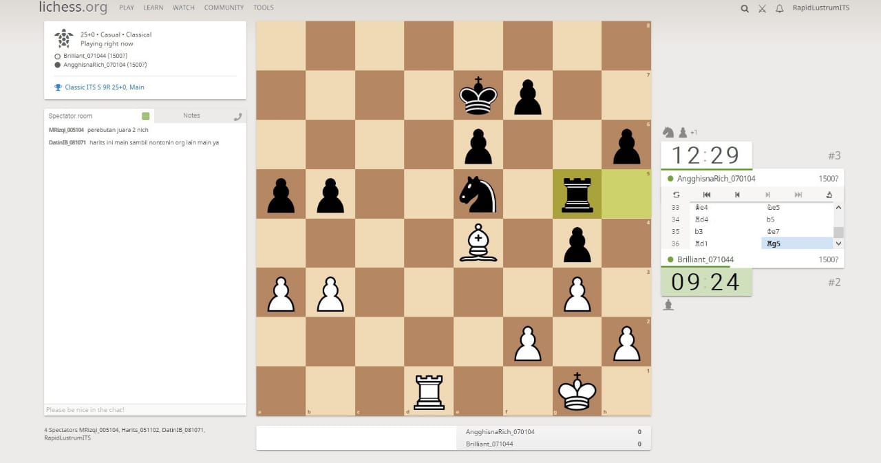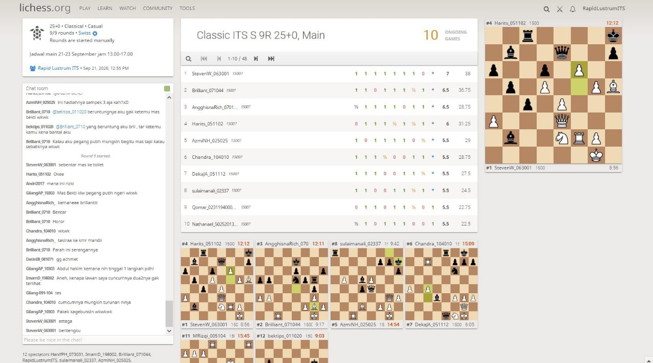 Tampilan laman Lichess yang digunakan untuk Lomba Catur Online dalam rangka Lustrum ITS ke-12.