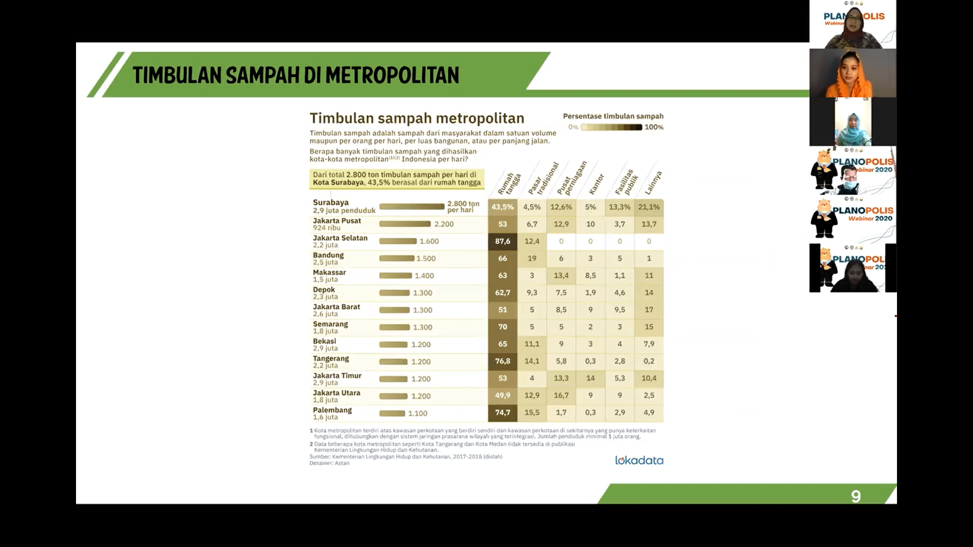 Materi mengenai tumbunan sampah dari metropolitan yang disampaikan dalam webinar Planopolis 2020.