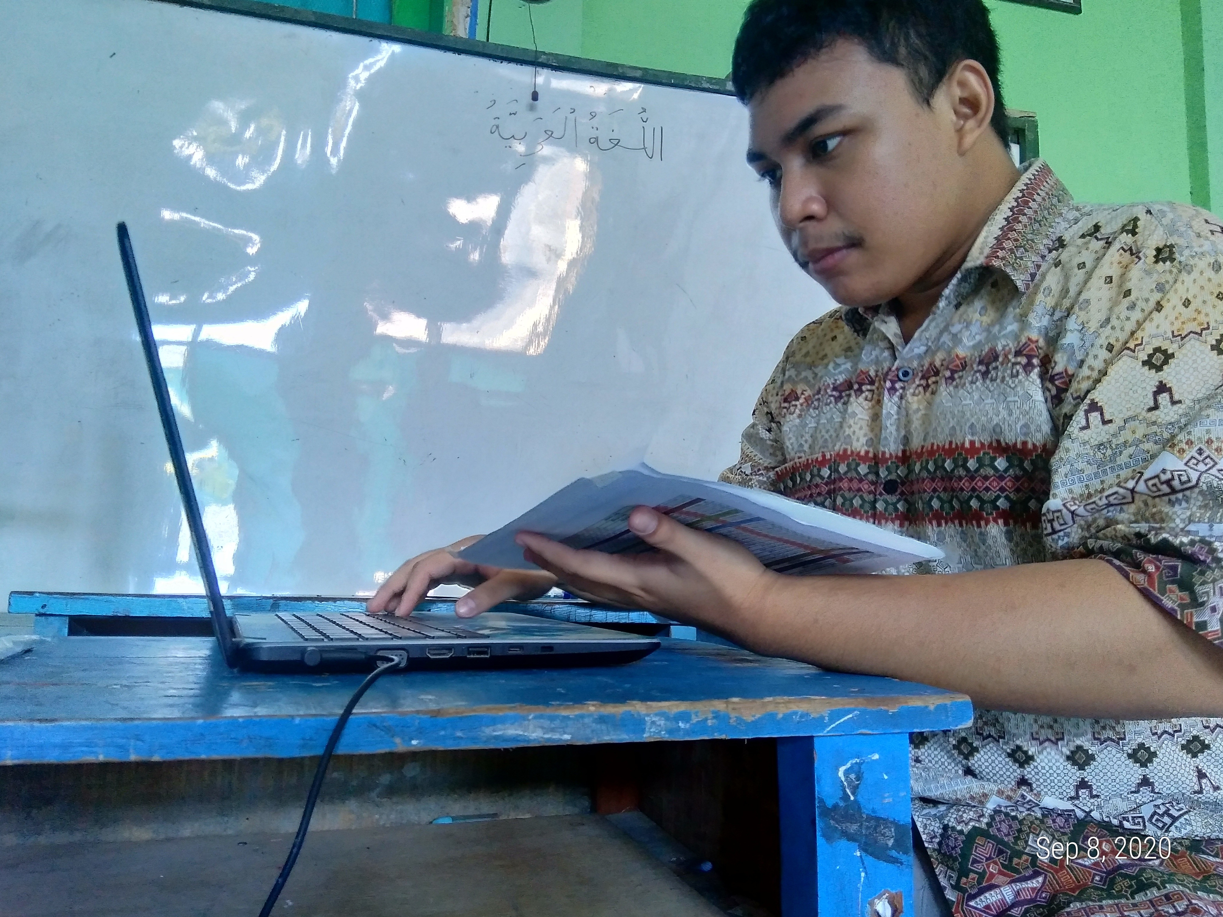 Angger sedang melaksanakan kegiatan belajar kelompok di salah satu rumah siswa SDN Pranggang 3