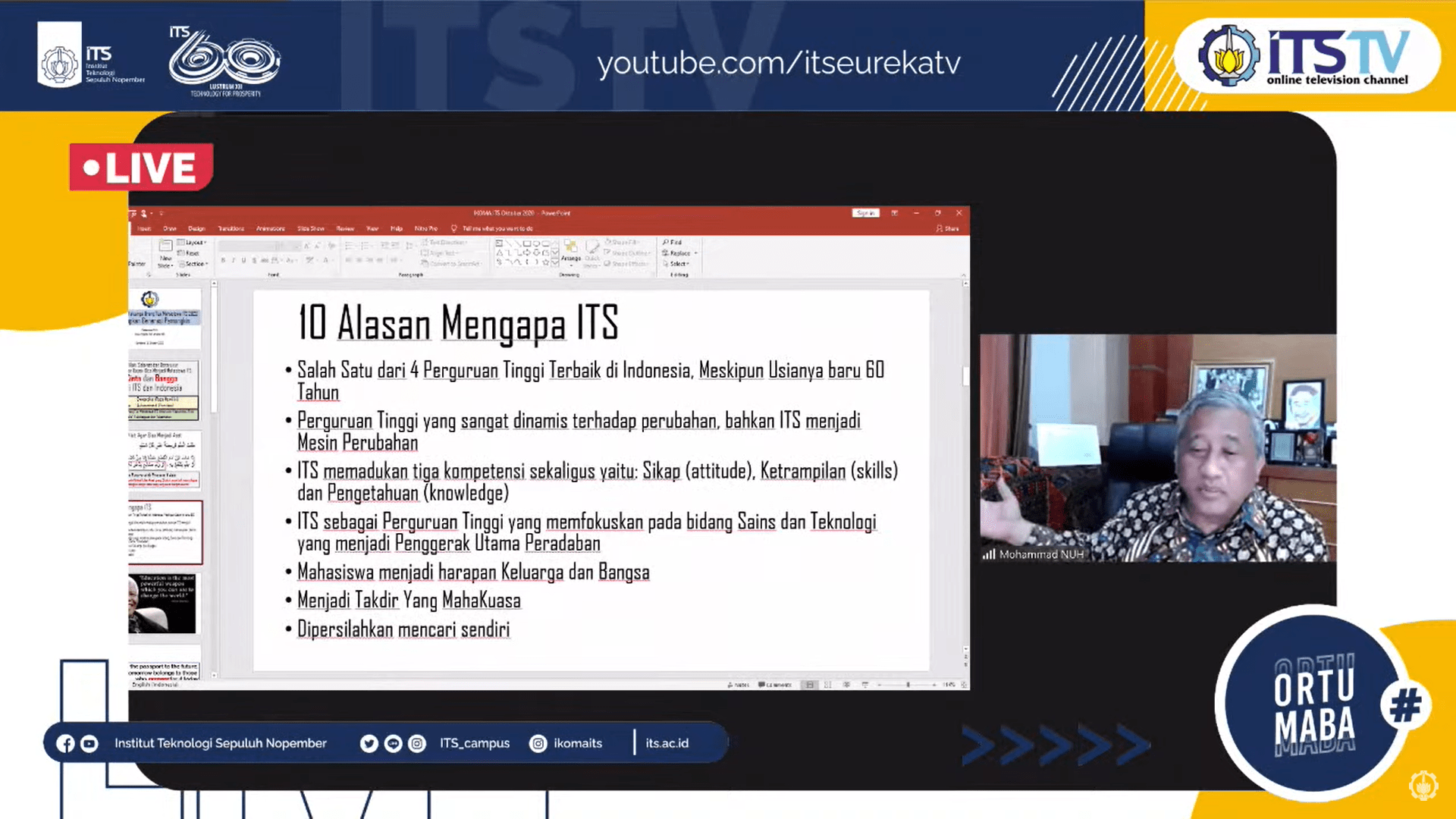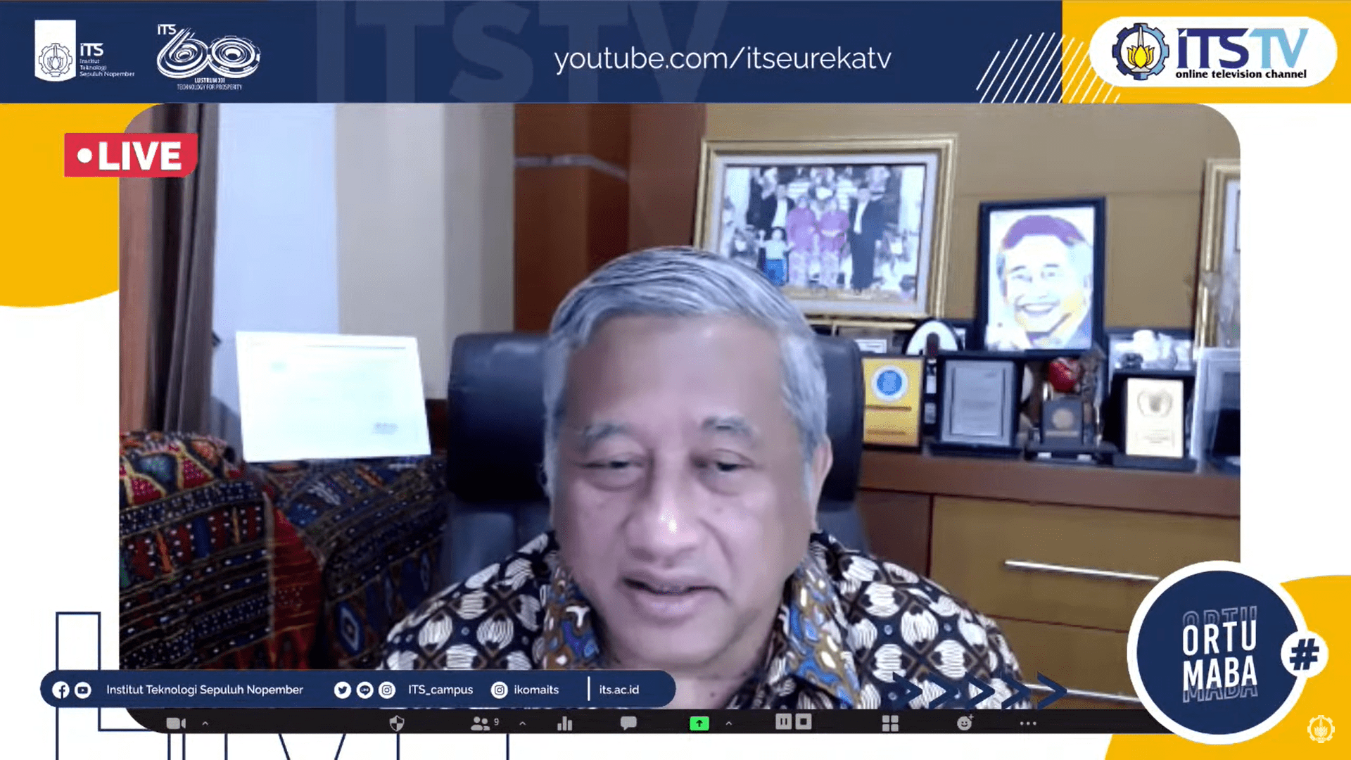 Kegiatan pertemuan kepada orang tua mahasiswa baru angkatan 2020 yang dilakukan secara daring dan disiarkan melalui kanal Youtube ITS TV