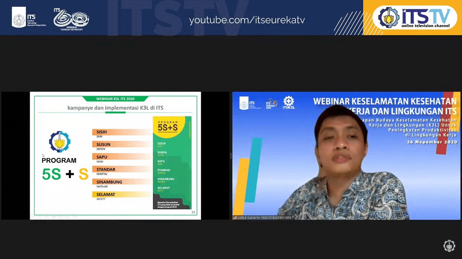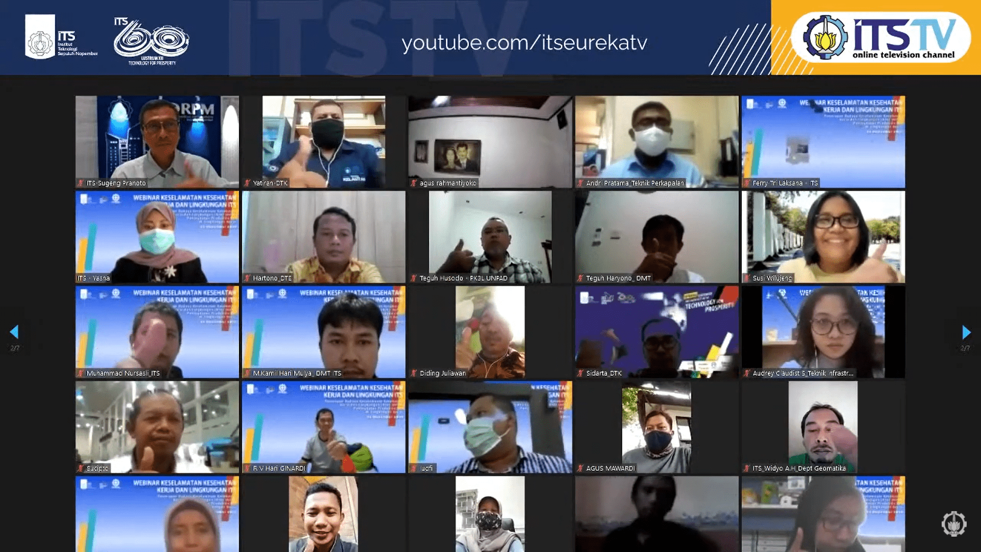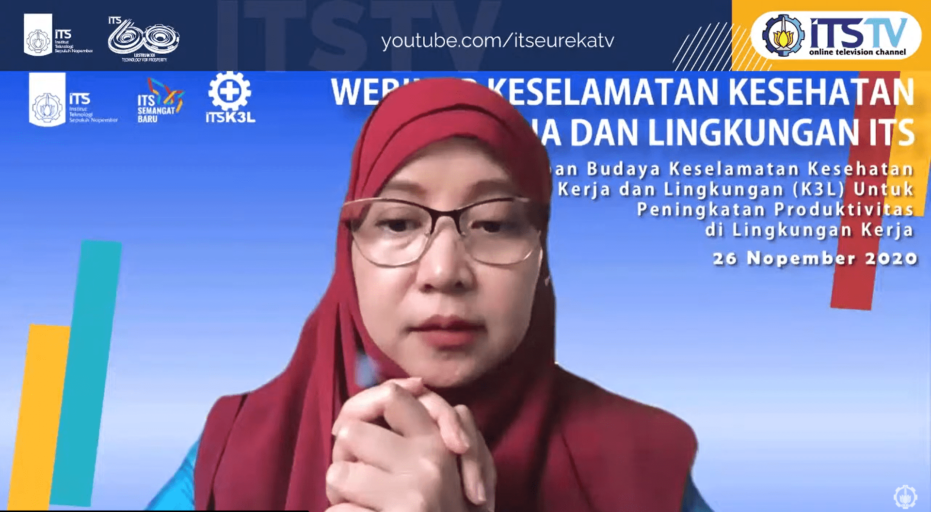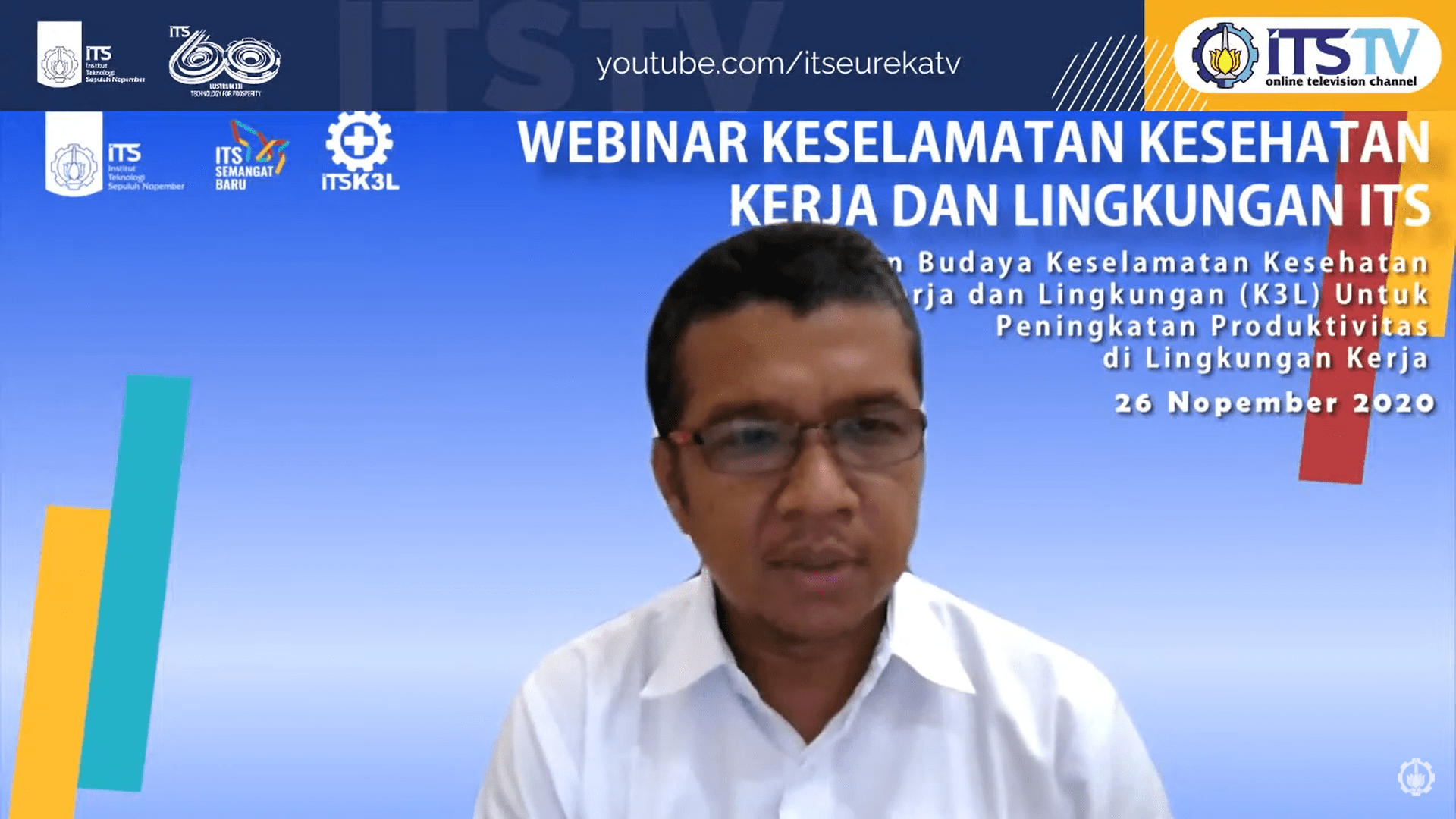 Kampus ITS, ITS News – Risiko kecelakaan di tempat kerja tidak dapat terelakkan oleh sang pekerja kapan pun dan di mana pun. Berlatar belakang hal itu, Institut Teknologi Sepuluh Nopember (ITS) mengadakan Webinar Keselamatan Kesehatan Kerja dan Lingkungan (K3L) guna meningkatkan budaya Keselamatan dan Kesehatan Kerja (K3) pada Kamis (26/11).